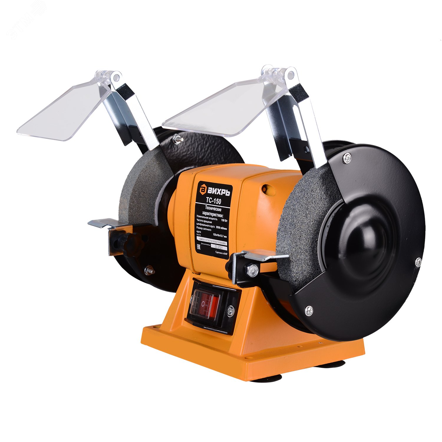 Станок точильный (точило для заточки инструмента) ВИХРЬ относится к типу универсальных лёгких заточных станков с приводом от электромотора и является низковольтным оборудованием. Точильный станок предназначен для заточки ножей, стамесок и другого режущего инструмента. Машина состоит из алюминиевого корпуса, в котором расположен асинхронный электродвигатель. На валу ротора двигателя крепятся шлифовальные круги. Для безопасности на корпусе машины смонтированы защитные кожухи с искрогасителем, прозрачным экраном и рабочим упором. Всегда во время работы используйте эти приспособления.