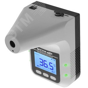 МЕГЕОН 162100 - настенный цифровой инфракрасный пирометр предназначенный для установки на контрольно-пропускных пунктах в местах большого пассажиропотока и массового скопления людей. Прекрасно подойдёт для внедрения в систему контроля и управления доступом (СКУД) в офисах, деловых центрах для осуществления автоматизированного контроля за сотрудниками. Термометр с высокой точностью позволяет измерить показатели тела в диапазоне 35 ... 42°С. Параллельно с этим происходит мониторинг температуры в помещении, в котором он установлен. Удобство эксплуатации достигается встроенной сигнализации при превышении предустановленного порога и обширному набору дополнительных функций и настроек. Предусмотрена возможность работы изделия совместно с персональным компьютером, на котором можно в режиме реального времени проводить просмотр и анализ полученных данных на специализированной программе.