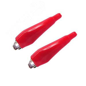 Зажим 'крокодил' 5А 56 мм в изоляторе представляет собой электромеханическое устройство, предназначенное для оперативного соединения или разъединения контакта проводов при выполнении измерительных работ или монтажа электрических и слаботочных сетей. Зажим получил свое название за схожесть с челюстями крокодила. Состоит он из двух фигурных деталей с 'крокодильими' зубцами, скрепленных серединами специальным штифтом и способных поворачиваться на некоторый угол вокруг оси соединения. К одной из деталей монтируется контактный провод. Сжатие 'челюстей' обеспечивается пружиной, вставленной с другой стороны штифта. Контактная часть изделия изготавливается из стали с никелированным покрытием и полностью закрыта изолятором.