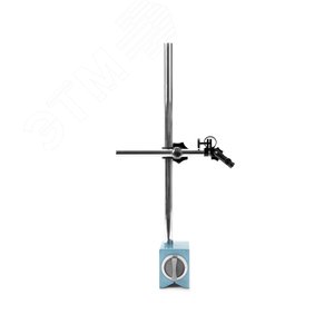 Штатив для изм.головок ШМ-IIВ КЛБ предназначен для крепления измерительных головок. Принцип действия основан на передвижении муфты со стержнем, с закрепленной на конце измерительной головкой, по цилиндрической колонке. На нижней поверхности выполнена призматическая выемка, позволяющая закреплять штатив на цилиндрических поверхностях. Штатив имеет устройство для точной установки на размер. Магнитное основание дает возможность устанавливать стойку на наклонных и вертикальных плоскостях без дополнительного крепления. Позволяет закреплять измерительные индикаторные головки как оснащенные ушком для крепления, так и для головок, закрепляемых на стержне. Благодаря механическому фиксатору положения плеча индикатор можно фиксировать в любом положении. Закрепляемая в муфте измерительная головка может занимать необходимое положение без перемещения штатива.