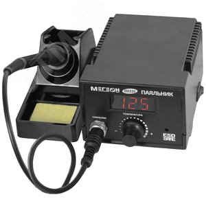 МЕГЕОН 00335 – это удобный паяльник с ярким светодиодным дисплеем и аналоговым регулятором установки температуры. Немаловажным преимуществом при работе с паяльником является маленький вес, мягкий провод и компактные размеры блока управления. На рукоятке предусмотрена резиновая накладка противоскольжения. Жало паяльника имеет распространённый типоразмер 900М-Т. Благодаря этому имеется большое количество сменных наконечников разной формы и размеров (в комплект не входят) для осуществления специфической пайки. В дополнение к написанному можно добавить ещё одно преимущество и это автоматическое поддержание установленной температуры паяльника. Для исключения повреждения радиокомпонентов статическим электричеством станция имеет фунцию антистатической защиты. Прибор по достоинству оценят профессионалы и любители.