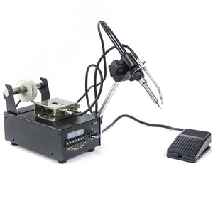 Паяльная станция МЕГЕОН 00385 является паяльной станцией с автоматической подачей припоя, обеспечивающей легкое использование с помощью только одной руки. Применение в конструкции шагового двигателя дает точность и широкие возможности управления подачей припоя. Станция позволяет осуществлять раздельную регулировку скорости подачи, ее продолжительности и времени возвратного перемещения проволочного припоя, обеспечивает их стабильность, превосходное качество пайки и высокую эффективность. Возможна работа паяльником без его крепления к паяльной станции. Керамический нагревательный элемент, импортируемый из Японии, обеспечивает быстрый и стабильный нагрев, а также надежность и безопасность. Паяльная станция оснащена мягкой трубкой для подачи припоя. Прибор найдёт широкое применение при изготовлении и производстве комплектующих и радиотехнических устройств и станет незаменинмым помощником на проиводстве.