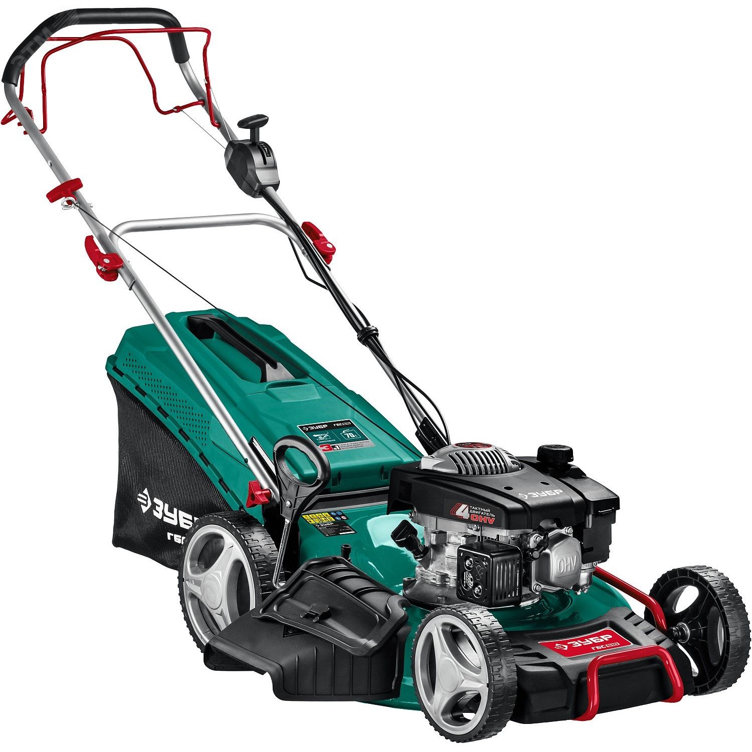 Простой в обслуживании 4тактный двигатель избавляет от необходимости готовить топливную смесь. Задние колеса увеличенного диаметра и подшипники на всех колесах облегчают нагрузку при передвижении газонокосилки. А привод колес от двигателя полнос. Увеличенный ресурс двигателя благодаря высокотехнологичной обработке, двум компрессионным кольцам и хромовому покрытию цилиндра. Сбалансированные характеристики мощности двигателя и ширины кошения ускоряют процесс обработки и снижают нагрузку, чем увеличивают ресурс изделия. Широкий диапазон и многоступенчатая центральная регулировка высоты кошения расширяют возможности применения газонокосилки. Легкосъемный травосборник большого объема не требует частого опустошения. Все органы управления вынесены на эргономичную рукоятку, что повышает удобство и безопасность работы. При потере контроля над машиной режущий инструмент и двигатель останавливаются
