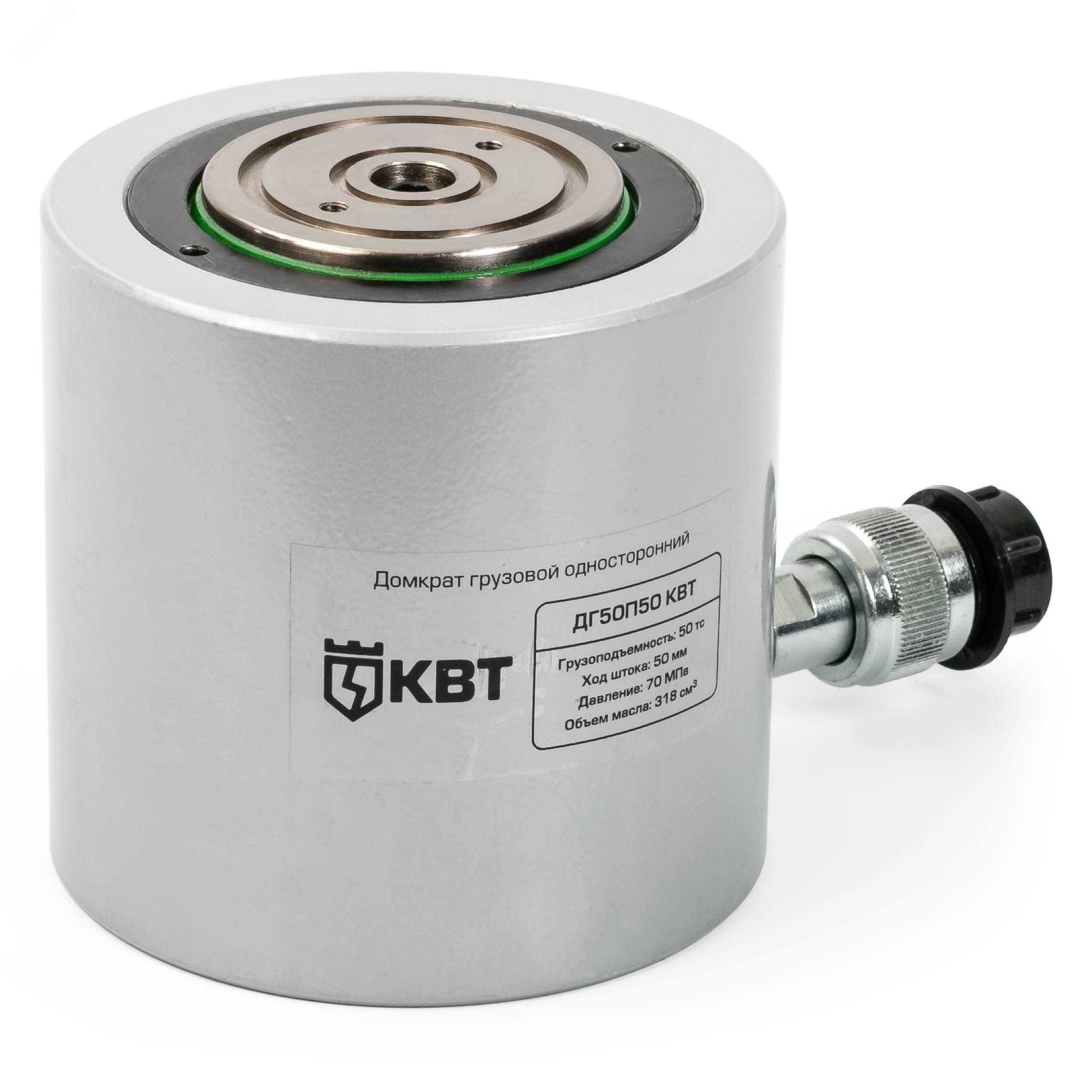 Предназначены для проведения ремонтных и монтажно-демонтажных работ во время выполнения операций подъема и перемещения грузов. В комплекте домкрат грузовой, ремкомплект (уплотнительные кольца). Максимальное давление - 700 бар (70МПа). Диапазон рабочих температур - 15 до +50 градусов по Цельсию. Пружинный возврат штока. Высокопрочная опора из закаленной стали, установленная на шток предохраняет его от повреждения, Рифленая поверхность опоры предотвращает скольжение груза. Износостойкое покрытие корпуса наносимое методом порошковой окраски. Совместимость - любые гидравлические насосы 'КВТ' с объемом рабочей жидкости не менее двойного объема домкрата