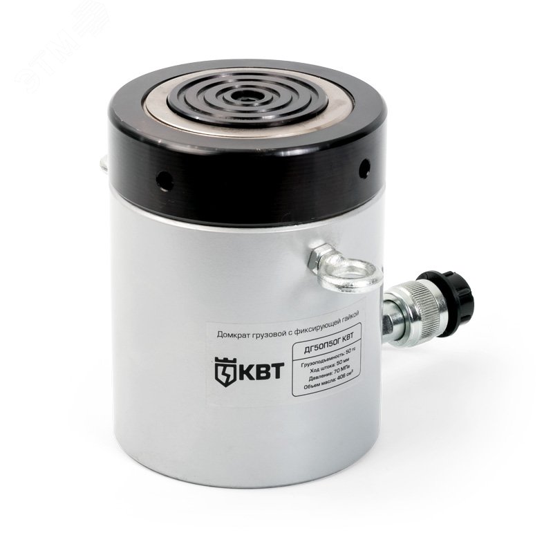 Домкраты оснащены системой безопасного удержания груза на длительное время, благодаря предохранительной гайке, которая фиксирует положение штока. В комплекте домкрат грузовой, ремкомплект (уплотнительные кольца). Максимальное давление - 700 бар (70МПа). Диапазон рабочих температур - 15 до +50 градусов по Цельсию. Пружинный возврат штока. Высокопрочная опора из закаленной стали, установленная на шток предохраняет его от повреждения, Рифленая поверхность опоры. Совместимость - любые гидравлические насосы 'КВТ' с объемом рабочей жидкости не менее двойного объема домкрата