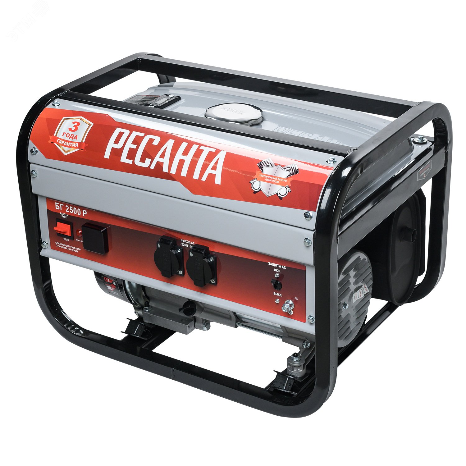 Электрическая машина, предназначенная для автономного электроснабжения потребителей бытового и профессионального назначения. В условиях временного или постоянного отсутствия электроэнергии обеспечить питание электрооборудования можно с помощью генератора РЕСАНТА модели БГ 2500 Р. Несмотря на компактные габариты и относительно небольшой вес, бензогенератор демонстрирует высокий КПД и хорошие показатели мощности. Сфера применения установки включает в себя, как коммерческие объекты (магазины, офисы), так и загородные дома, дачи, подсобные хозяйства. Оснащены многофункциональным цифровым дисплеем с функциями индикации величины напряжения, частоты тока и счетчика моточасов. Все модели с электростартером (Э) имеют в комплекте аккумулятор. Защита от перегруза и недостатка масла позволяют увеличить срок службы и предохраняет от непредвиденных ситуаций.