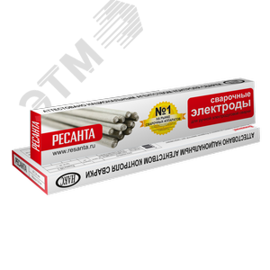 Сварочные электроды РЕСАНТА предназначены для ручной дуговой сварки стальных конструкций переменным или постоянным током. Данные электроды могут применяться как в быту, так и для сварки ответственных конструкций из углеродистой стали с массовой долей углерода до 0,25%. Сварка возможна в различных пространственных положениях, кроме сварки на спуск. Электроды РЕСАНТА относятся к высококачественным электродам типа МР-3 с рутиловым покрытием и изготовлены в соответствии с требованиям ГОСТ. Электрод представляет собой металлический стержень из электропроводного материала, предназначенный для подвода тока к свариваемому изделию. Плавящиеся электроды РЕСАНТА изготовляют из сварочной проволоки Св-08А, ГОСТ 2246-70. Поверх металлического стержня методом опрессовки под давлением наносят слой защитного рутилового покрытия. Роль покрытия заключается в металлургической обработке сварочной ванны, защите от атмосферного воздействия и обеспечении более устойчивого горения дуги.
