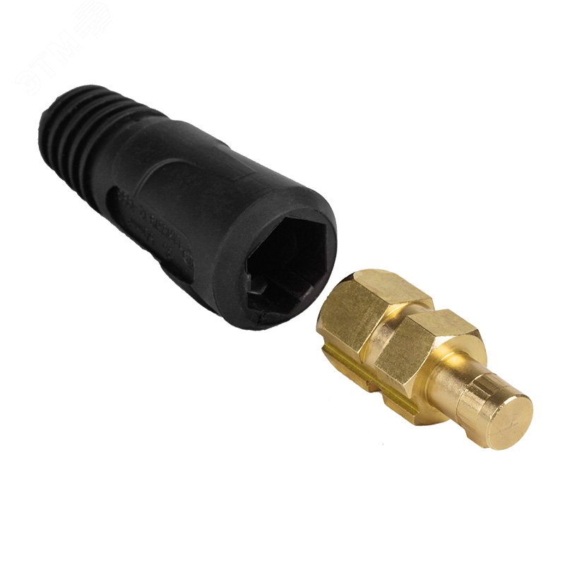 Вилка кабельная REXANT – быстросъемный соединительный Разъем (штекер), который монтируется на кабель сварочных аксессуаров (держатель электрода на проводе или зажим массы) для последующего простого и надежного соединения к корпусу сварочного аппарата, при наличии на нем соответствующего Разъема или с кабелем с целью общего увеличения длины кабеля. Сварочные аксессуры REXANT изготавливаются только из качественных материалов, что обеспечивает безопасное использование и предохраняет от замыканий и пожароопасных ситуаций.