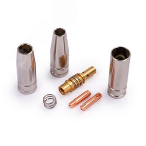 Эффективность процесса электросварки и, соответственно, качество конечного результата напрямую зависят от качества и надежности сварочного оборудования, аксессуаров, расходных материалов. Стабильная работа оборудования невозможна без надежных комплектующих, являющихся в данном случае частью общей системы – сварочного поста. Эти незначительные на первый взгляд элементы на самом деле существенно влияют на работоспособность аппарата и, собственно, напрямую на качество сварного шва. Поэтому в случае их износа необходимо оперативно купить качественную замену данным комплектующим. Набор комплектующих MIG-15 и другие расходные материалы из нашей номенклатуры позволят исключить простой оборудования, ведь его работоспособность будет очень быстро восстановлена. Аксессуары имеют достаточно большой рабочий ресурс и приемлемые цены. В комплекте данного набора 2 наконечника диаметром 0,8 мм и 1,0 мм, 3 сопла диаметром 9,2 мм, 12 мм, 16 мм.