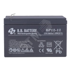 Необслуживаемые аккумуляторные батареи BB BATTERY BP12-12 емкостью 12 Ач и напряжением 12 В работают как в циклическом так и в режиме постоянного заряда. Спектр применения батарей линейки BP - от аварийного освещения и электроснабжения, медицинского оборудования, источников бесперебойного питания до фонарей и детских игрушек. Герметичный корпус выполнен из неокисляемого теплостойкого ABS пластика. Технология AGM (электролит, абсорбированный в стекловолокне) позволяет избежать выделения свободного кислорода и водорода, что делает эксплуатацию аккумуляторов B B BATTERY BP12-12 безопасной и увеличивает сроки их использования - до 10 лет.