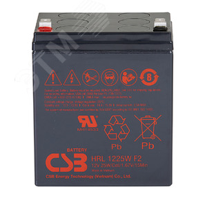 Аккумулятор CSB HRL 1225W емкостью 25 Ач и напряжением 12 В разработан специально для кратковременных разрядов высоким током. Главная особенность батареи — внушительный срок службы, при правильной эксплуатации он может достигать 10 лет. Герметичный корпус из ABS-пластика позволяет использовать CSB HRL 1225W в любом положении, за исключением положения «дном верх» для обеспечения работы предохранительного клапана. Аккумулятор подходит для работы в циклическом и в буферном режиме. Аккумуляторная батарея CSB HRL 1225W имеет усовершенствованную конструкцию легированных кальцием электродов из особо чистого свинца, что обеспечивает продолжительный срок службы и улучшенные разрядные характеристики. Аккумулятор отвечает всем современным требованиям к герметизированным батареям, имеет сертификат соответствия Госстандарта РФ (''Ростест''), заключение ВНИИПО МВД ''О пожаровзрывобезопасности''.