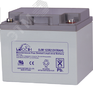 Свинцово-кислотный аккумулятор Leoch DJM 1238 с ёмкостью 38 Ач, напряжением 12 В может эксплуатироваться в циклическом (260 циклов при глубине разряда 30%) и буферном (до 12 лет) режимах. Материал корпуса — прочный неокисляемый ABS-пластик, на крышке располагается клапан избыточного давления. Leoch DJM1238 создан с использованием стекловолоконных сепараторов, они удерживают электролит неподвижно. Рекомбинация газов происходит внутри корпуса изделия, это исключает возможность протечки электролита и делает аккумулятор необслуживаемым.