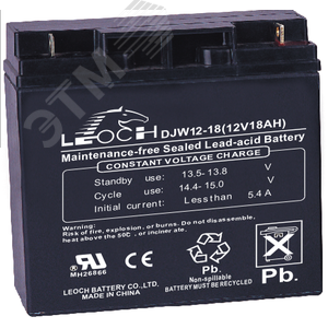 Свинцово-кислотный аккумулятор Leoch DJW12-18 предназначен для работы как в буферном (до 8 лет при правильном использовании), так и в циклическом (260 циклов при 100% глубине разряда). Он обладает ёмкостью 18 Ач, напряжением 12 В и применяется в ИБП, охранных и пожарных системах, телекоммуникациях. Жидкий электролит удерживается неподвижно внутри герметичного корпуса стекловолоконными сепараторами (absorbed glass mat), что полностью исключает возможность протечки. На крышке Leoch DJW 12-18 располагается односторонний клапан, который позволяет газам внутри корпуса рекомбинировать и сбрасывает избыточное давление.