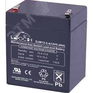 Свинцово-кислотный аккумулятор Leoch DJW12-5.4 предназначен для работы как в буферном (до 8 лет при правильном использовании), так и в циклическом (260 циклов при 100% глубине разряда). Он обладает ёмкостью 5.4 Ач, напряжением 12 В и применяется в ИБП, охранных и пожарных системах, телекоммуникациях. Жидкий электролит удерживается неподвижно внутри герметичного корпуса стекловолоконными сепараторами (absorbed glass mat), что полностью исключает возможность протечки. На крышке Leoch DJW 12-5.4 располагается односторонний клапан, который позволяет газам внутри корпуса рекомбинировать и сбрасывает избыточное давление.
