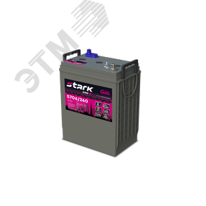 Свинцово-кислотный необслуживаемый гелевый аккумулятор Stark S706/260 напряжением 6 В ёмкостью 280 Ач изготовлен по технологии PURE GEL TECH. Раствор серной кислоты, смешанный с пирогенным диоксидом кремния, представляет из себя желеобразную массу — такое состояние электролита положительно сказывается на сроке эксплуатации: до 15 лет в буферном режиме и не менее 1200 циклов в циклическом. Герметичный корпус батареи выполнен из высокопрочного полимера, устойчивого к деформации. Аккумулятор можно эксплуатирова в вертикальном и горизонтальном положении. На крышке предусмотрены VRLA-клапаны, индивидуальный для каждой ячейки. Stark S706/260 надёжно герметизирован, обслуживать свинцово-кислотный аккумулятор не требуется.