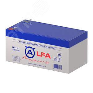 Аккумуляторная батарея FB3.2-12 +A- LFA  FB3.2-12 +A-LFA необслуживаемая (выполненная по AGM–технологии) общего применения, имеет небольшие массогабаритные показатели, способна работать в циклическом режиме, герметизирована, работоспособна в любом положении, безопасна в эксплуатации, имеет низкий уровень саморазряда, высоконадежна. Предназначена для обеспечения резервным питанием системы охраны и безопасности, телекоммуникационного оборудования, промышленных объектов широкого назначения, работы в ИБП.