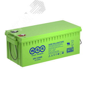 Аккумуляторная батарея WBR серии GPL 122000 - герметизированные, выполненные по технологии AGM, свинцово-кислотные аккумуляторные батареи общего применения со сроком службы 12 лет в буферном режиме или 260 циклов заряда-разряда в циклическом режиме при 100% разряде. Эти высокоэффективные перезаряжаемые батареи не требуют обслуживания в течение всего срока службы.