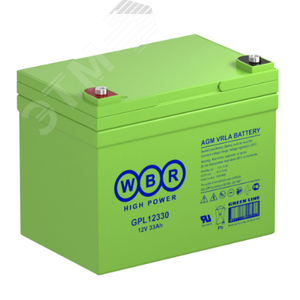 Аккумуляторная батарея WBR серии GPL 12330 - герметизированные, выполненные по технологии AGM, свинцово-кислотные аккумуляторные батареи общего применения с увеличенным 12 летним сроком службы в буферном режиме или 260 циклов заряда-разряда в циклическом режиме при 100% разряде. Эти высокоэффективные перезаряжаемые батареи не требуют обслуживания в течение всего срока службы.