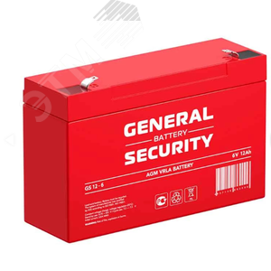 Свинцово-кислотный аккумулятор General Security GS 12-6 благодаря своим характеристикам (напряжение 6 В, емкость 12 Ач) применяется в таких ответственных системах как - охранная, пожарная, ИБП, телекоммуникации. Корпус из акрило-бутадиен-стирола (ABS) ударопрочный и герметичный, он исключает возможность протекания электролита и испарения газов, что делает его полностью безопасным. При правильной эксплуатации (+25 градусов С) срок службы достигает 7 лет. На крышке располагается VRLA (valve-regulated lead–acid battery) односторонний клапан, который срабатывает при возникновении избыточного давления внутри аккумулятора. General Security GS 12-6 создан с применением технологии AGM (absorbed glass mat), стекловолоконные сепараторы пропитаны жидким электролитом и удерживают его в неподвижном состоянии.