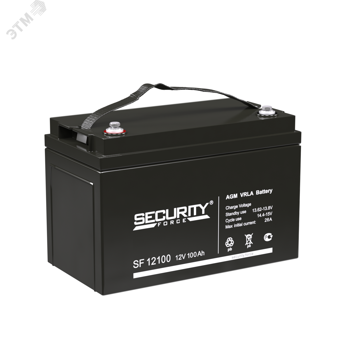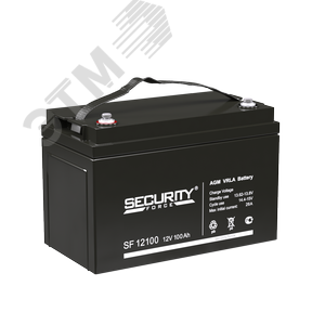 Аккумулятор Security Force SF 12100 благодаря своим характеристикам (напряжение 12 В, ёмкость 100 Ач) применяется в - охранных и пожарных системах, кассовых аппаратах, аварийном освещении. Корпус из ABS пластмассы надёжно запаян, это исключает протекание электролита и позволяет газам рекомбинировать. На крышке располагается односторонний клапан избыточного давления. Security Force SF 12100 работает как в циклическом, так и в буферном режиме. Благодаря стекловолоконным сепараторам (AGM) жидкий электролит удерживается в неподвижном состоянии. Срок службы аккумулятора 8 лет.