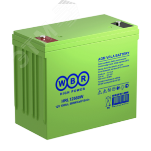 Свинцово-кислотный аккумулятор WBR HRL12560W (ёмкость 150 Ач, напряжение 12 В) предназначен для высокой энергоотдачи. Технология AGM (стекловолоконные сепараторы, пропитанные электролитом) и ударопрочный корпус из ABS-пластика обеспечивают полную герметичность и исключают возможность протекания электролита, что, также, делает батарею необслуживаемой (не требует долива электролита) на протяжении всей продолжительности жизни изделия. Срок службы аккумулятора WBR HRL12560W составляет 12 лет в буферном режиме.
