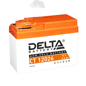 Герметизированный необслуживаемый VRLA cвинцово-кислотный стартовый аккумулятор Delta CT 12026 напряжением 12В и емкостью 2.5Ач. Обладает стартовым током в 45А. Полярность - боковая (- +). Аккумулятор соответствует следующему коду YUASA - YTR4A-BS. Разработан специально для пуска двигателей мототехники. Изготовлен по технологии AGM (с микропористым заполнителем, пропитанным электролитом) из негорючего ABS пластика. Срок службы аккумулятора достигает 3-5 лет. Высокая стартовая мощность и повышенная энергоотдача. Адаптирован к Российским условиям эксплуатации.