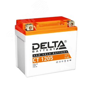 Герметизированный необслуживаемый VRLA cвинцово-кислотный стартовый аккумулятор Delta CT 1205 напряжением 12В и емкостью 5Ач. Обладает стартовым током в 80А. Полярность - обратная (- +). Аккумулятор соответствует следующему коду YUASA - YTX5L-BS, YT5L-BS, YTZ7S. Разработан специально для пуска двигателей мототехники. Изготовлен по технологии AGM (с микропористым заполнителем, пропитанным электролитом) из негорючего ABS пластика. Срок службы аккумулятора достигает 3-5 лет. Высокая стартовая мощность и повышенная энергоотдача. Адаптирован к Российским условиям эксплуатации.