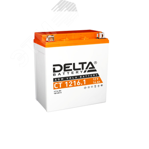 Герметизированный необслуживаемый VRLA cвинцово-кислотный стартовый аккумулятор Delta CT 1216.1 напряжением 12В и емкостью 16Ач. Обладает стартовым током в 230А. Полярность - прямая (+ -). Аккумулятор соответствует следующему коду YUASA - YTX16-BS, YB16B-A. Разработан специально для пуска двигателей мототехники. Изготовлен по технологии AGM (с микропористым заполнителем, пропитанным электролитом) из негорючего ABS пластика. Срок службы аккумулятора достигает 3-5 лет. Высокая стартовая мощность и повышенная энергоотдача. Адаптирован к Российским условиям эксплуатации.