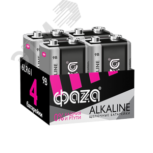 Элементы питания алкалиновые 6LR61 (крона) ФАZА Alkaline (4 шт. в упаковке)