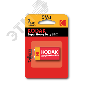 Батарейка Kodak 6F22-1BL SUPER HEAVY DUTY Zinc [K9VHZ-1B] (10/50/9900)