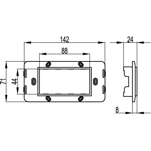Каркас для монтажа ЭУИ "Brava" в стены и коробки PDD-N60. Назначение: монтаж ЭУИ "Brava". Характеристики: соединения 2-х и более каркасов между собой, имеются специальные выступы и пазы; ЭУИ "Brava" защелкиваются в каркасы изнутри (с задней стороны); Требования к коробке: диаметр встраиваемой коробки должен быть 65-68 мм, глубина от 40 мм и более, межосевое расстояние (при монтаже 2-х и более коробок) − 71 мм. Кол-во модулей: 4. Цвет: черный
