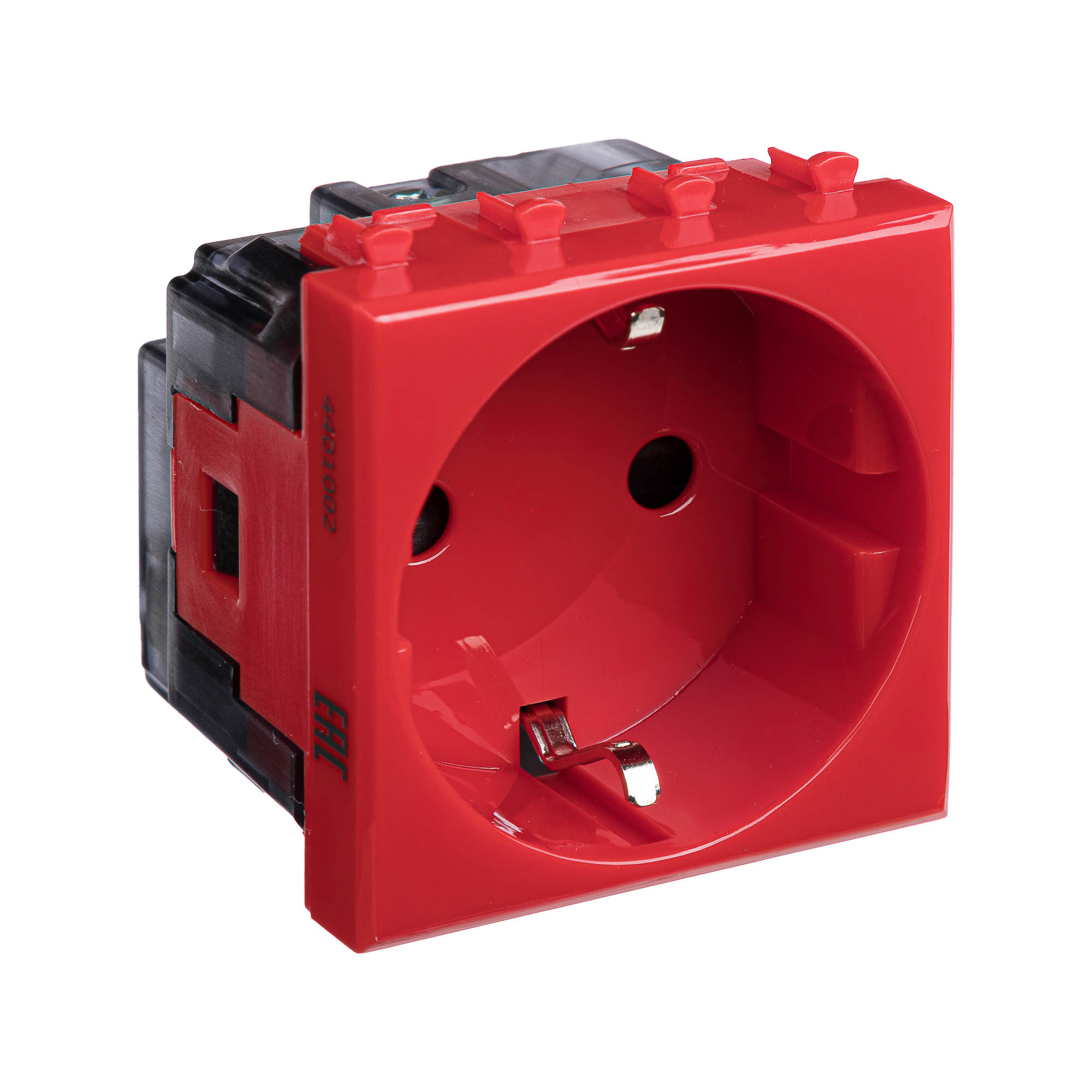 Розетка модульная, 2P+E, с з/ш, "Avanti", "Красный квадрат", 2 модуля
