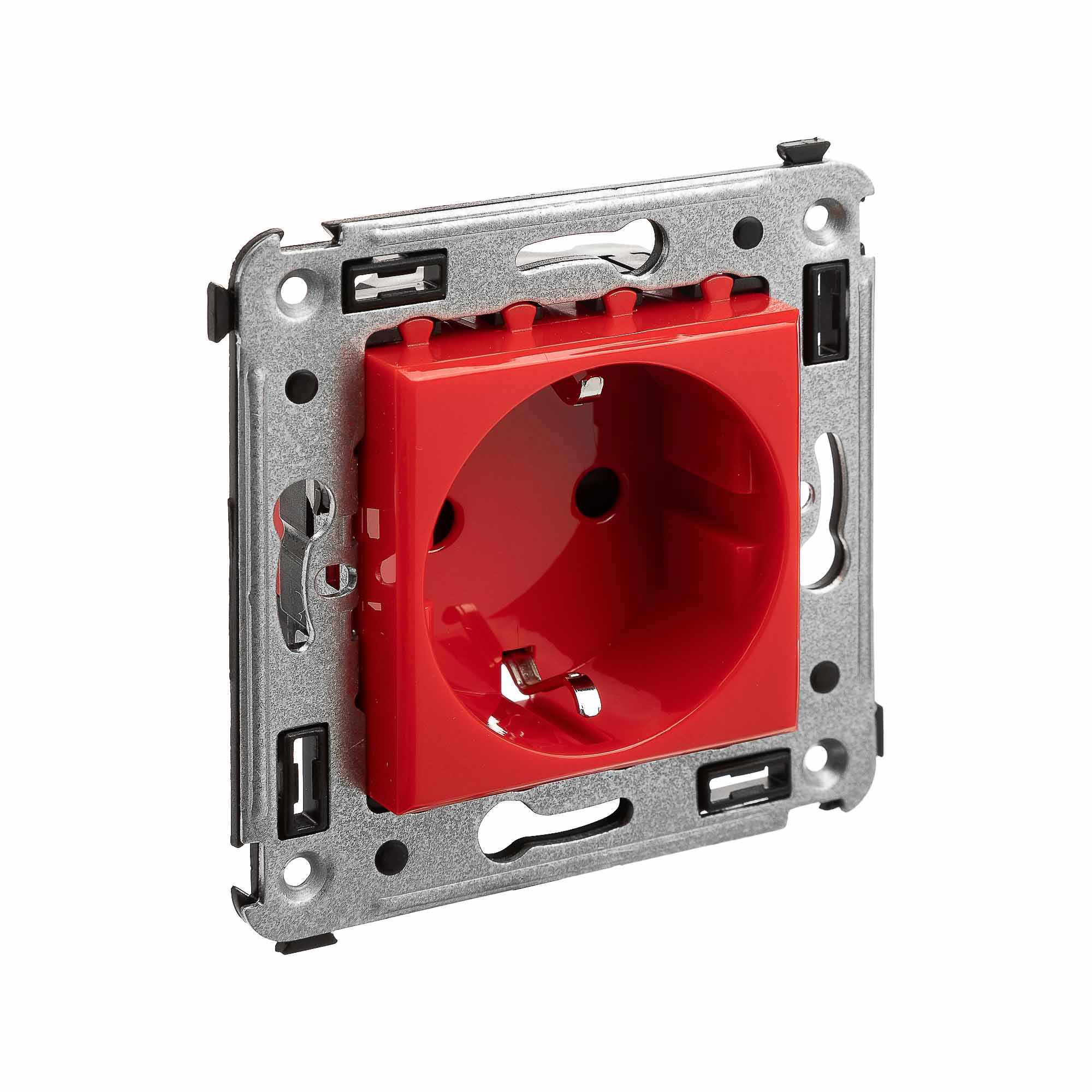 Розетка в стену, 2P+E, с з/ш, "Avanti", "Красный квадрат"