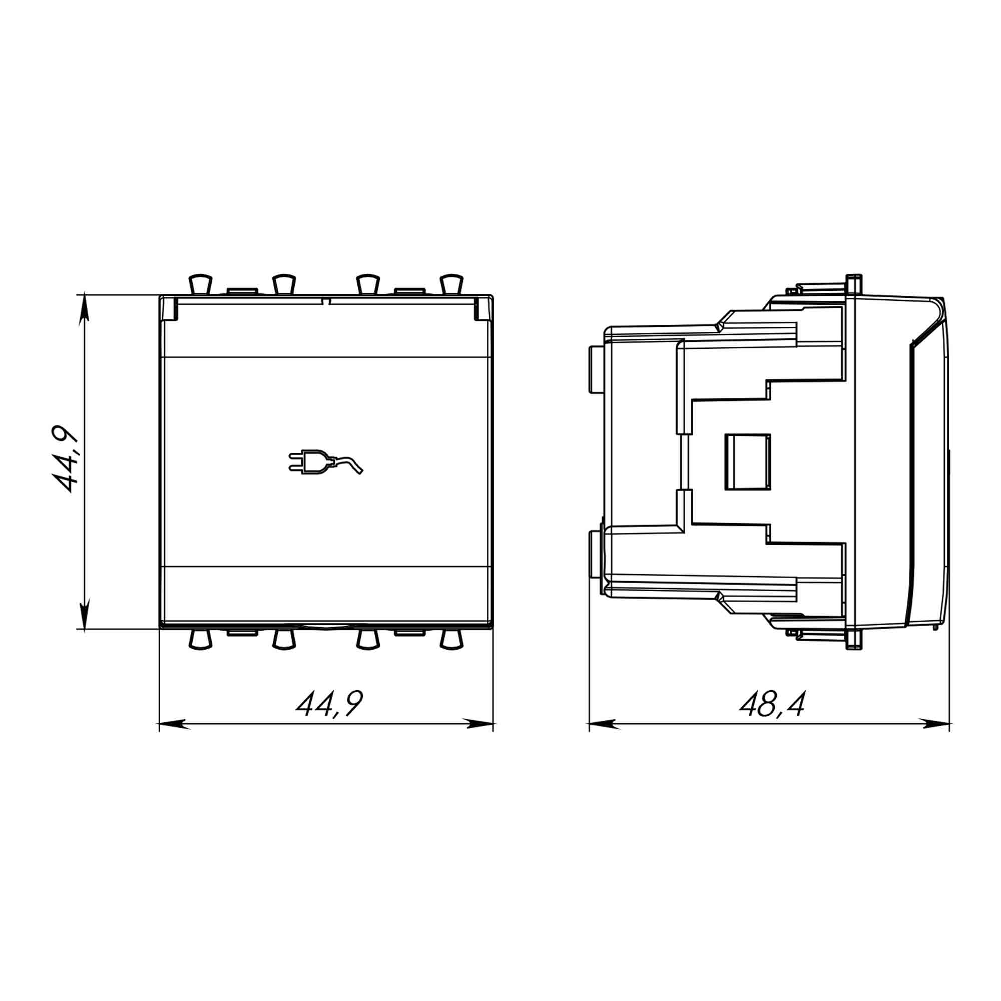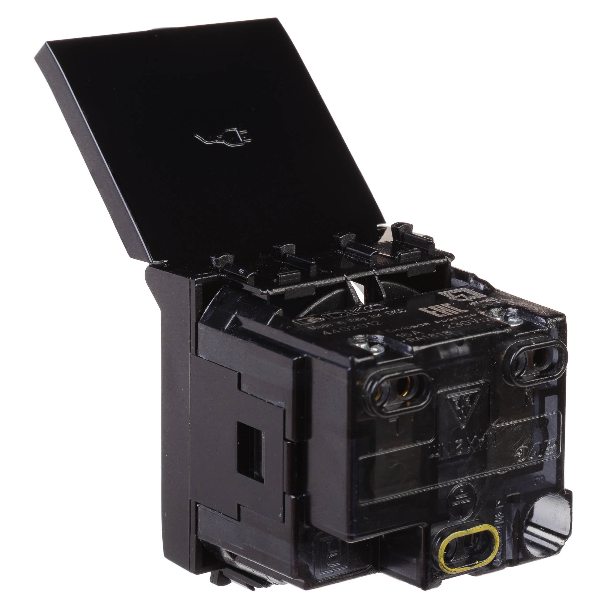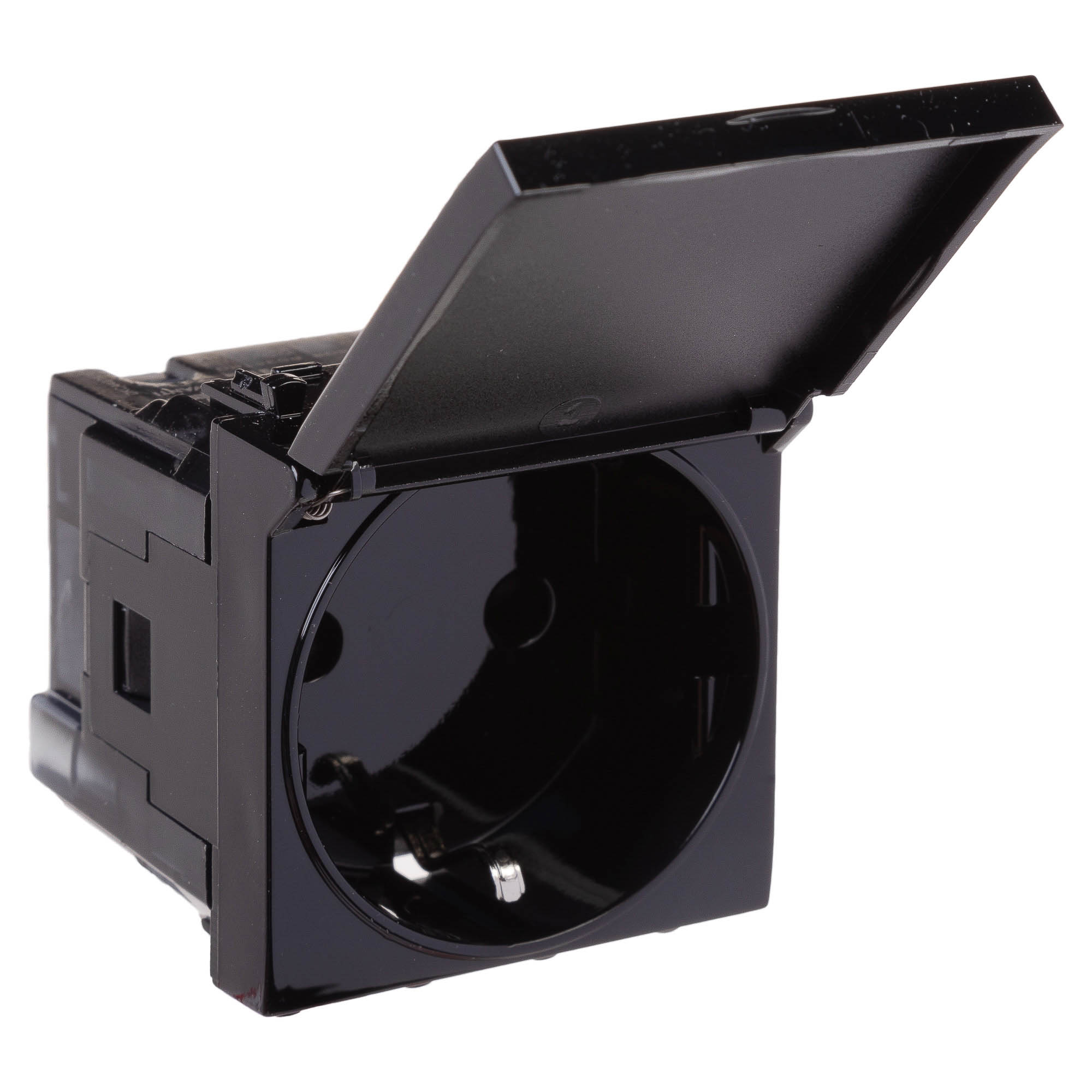 Розетка с крышкой модульная, 2P+E, с з/ш, "Avanti", "Черный квадрат", 2модуля