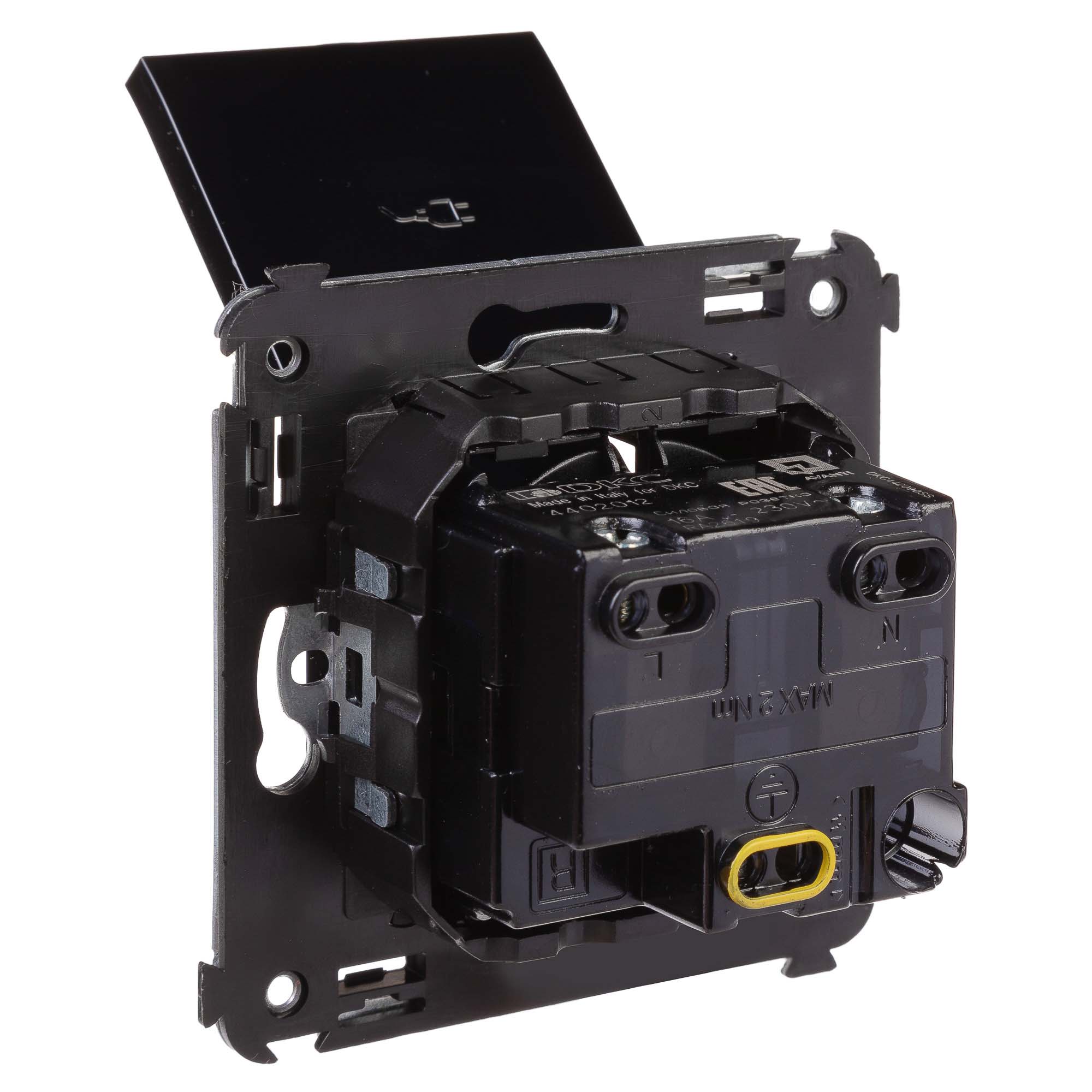 Розетка с крышкой в стену, 2P+E, с з/ш, "Avanti", "Черный квадрат"