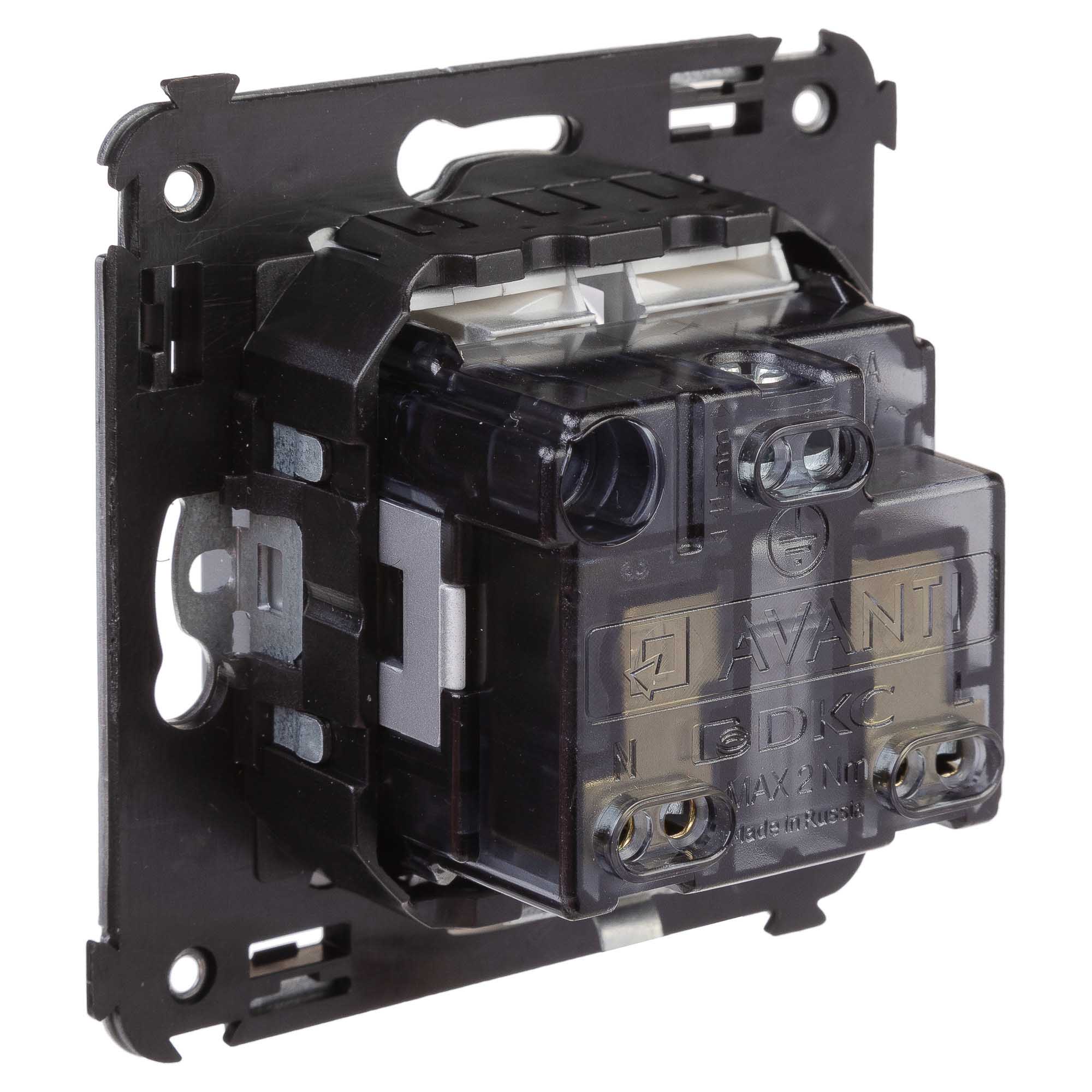 Розетка в стену, 2P+E, с з/ш, "Avanti", "Закаленная сталь"