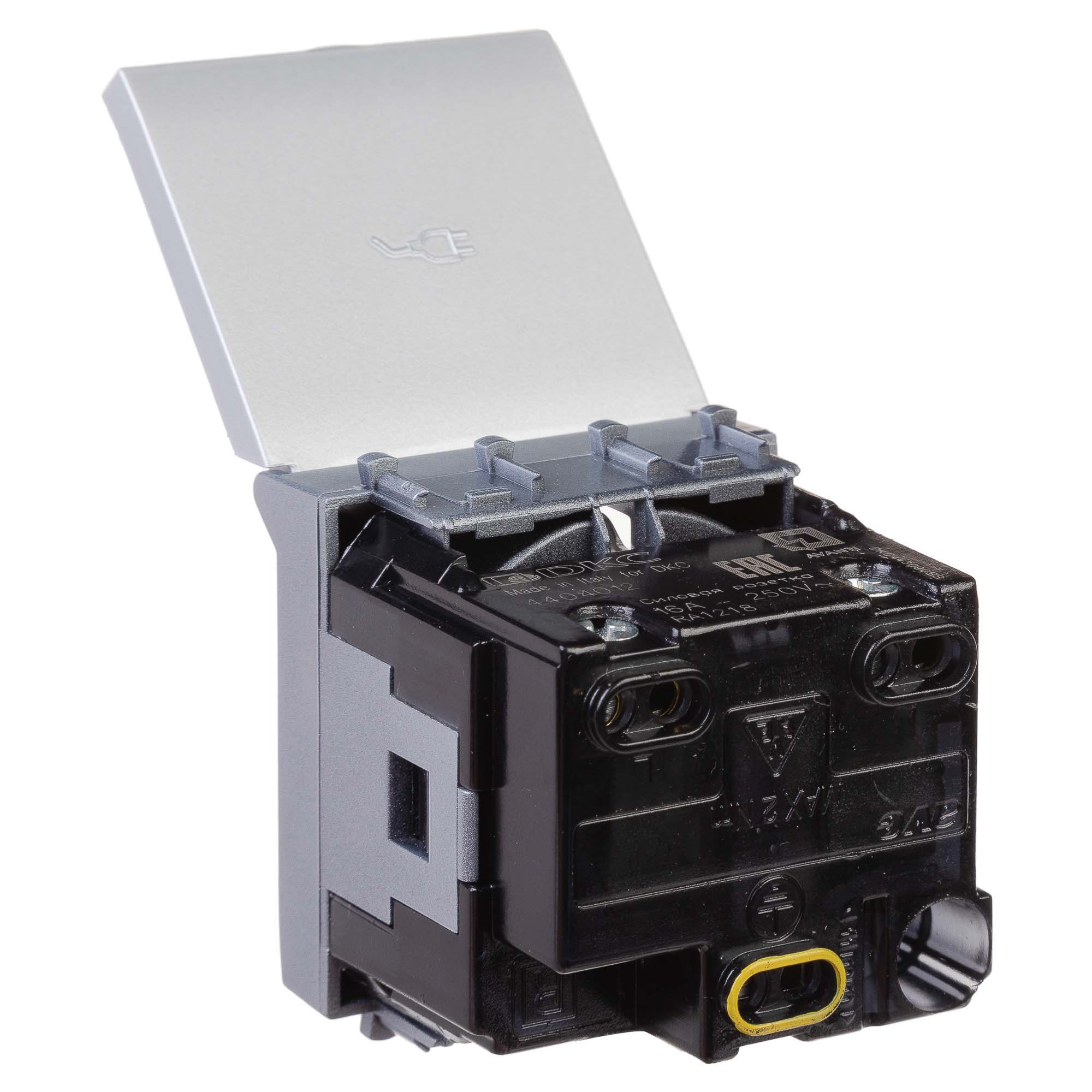 Розетка с крышкой модульная, 2P+E, с з/ш, "Avanti", "Закаленная сталь",2 модуля