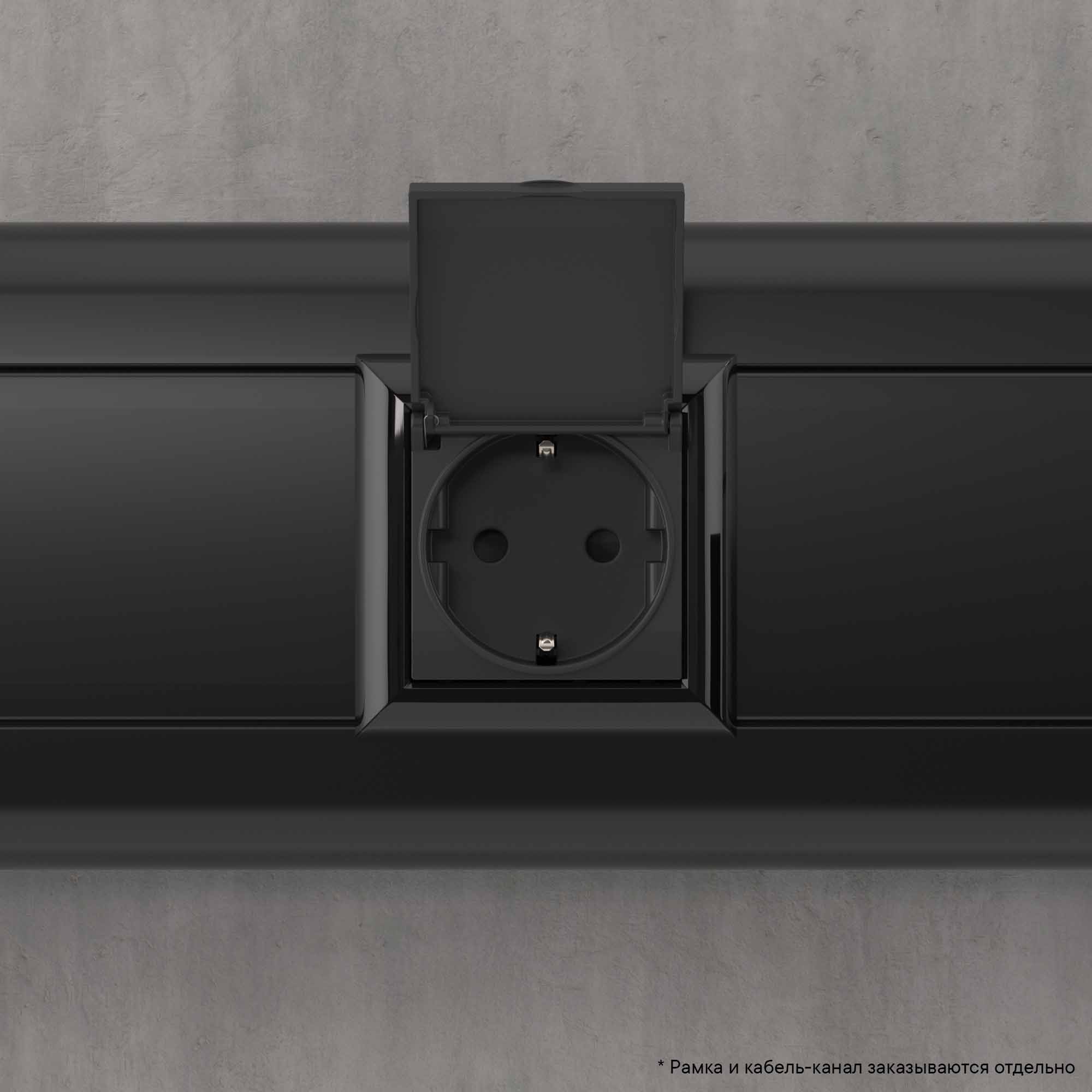 Розетка с крышкой модульная, 2P+E, с з/ш, "Avanti", "Черный матовый", 2модуля