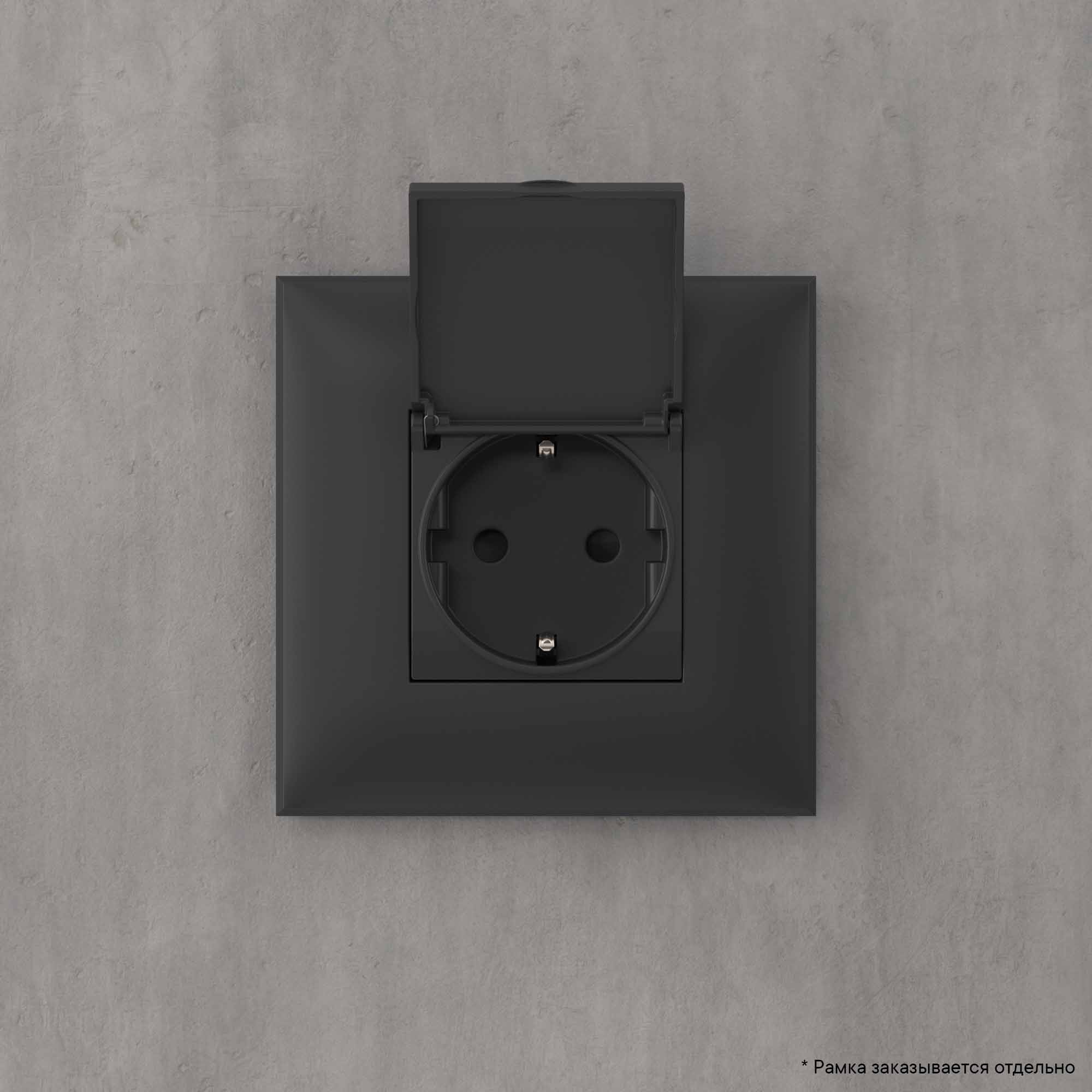 Розетка с крышкой в стену, 2P+E, с з/ш, "Avanti", "Черный матовый"