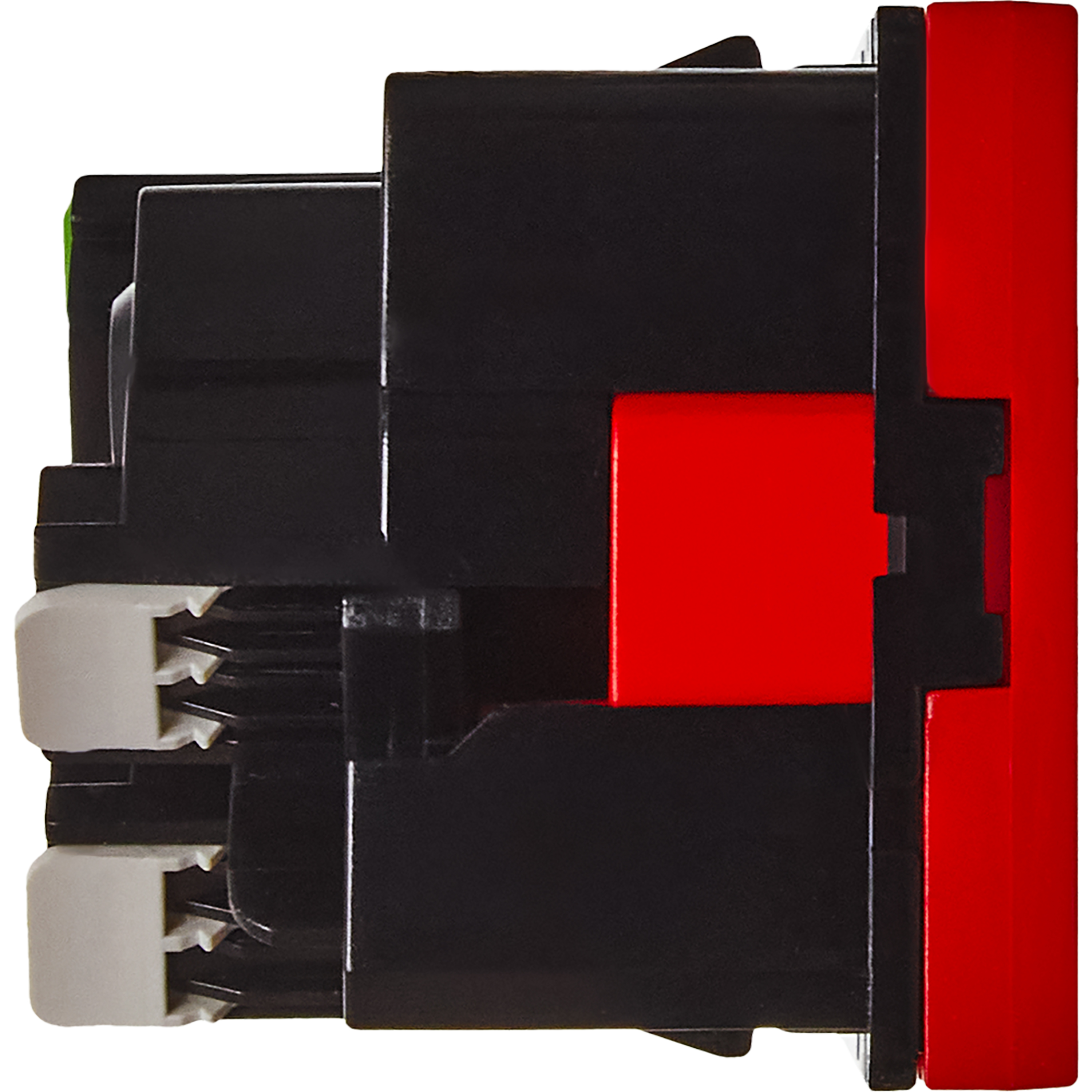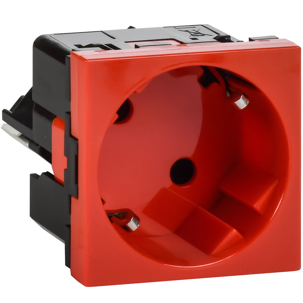 Розетка 45град с заземляющим контактом без защитной шторки и безвинтовым зажимом (2 модуля) красная