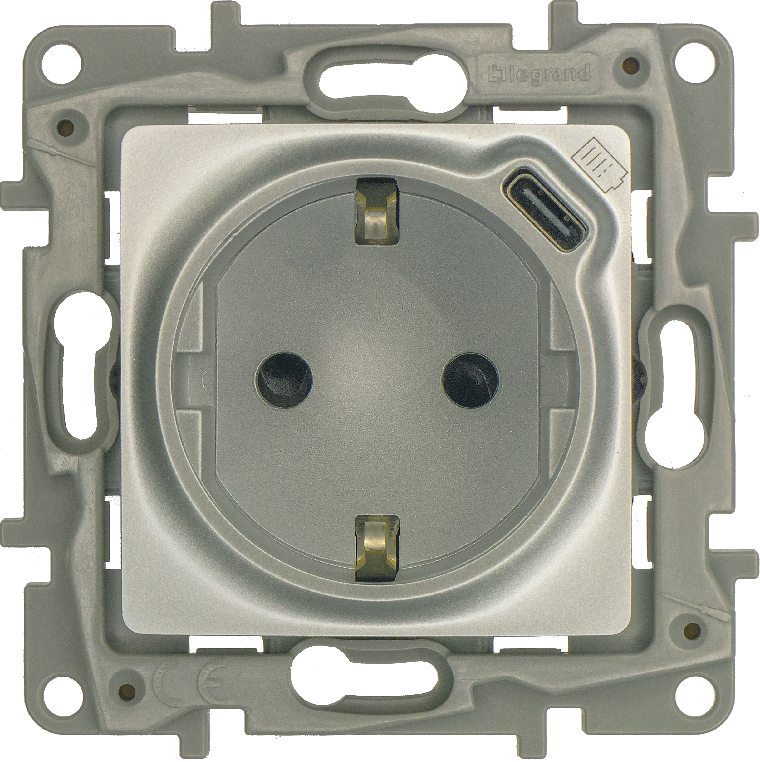 ETIKA Розетка 1-местная с заземлением с защитными шторками безвинтовые зажимы 16А с USB C 7,5Вт алюминий