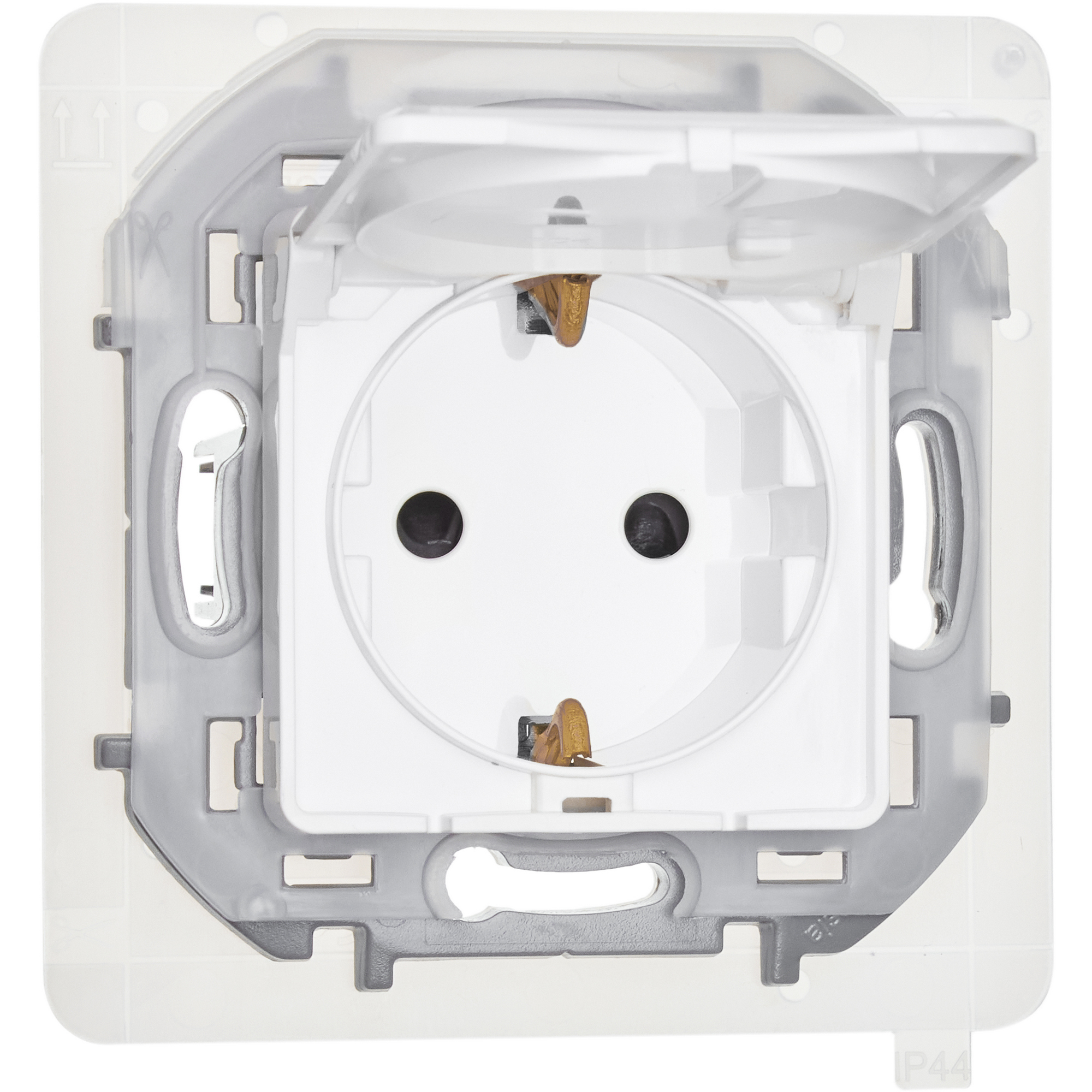 INSPIRIA Розетка 1-местная с заземлением с защитными шторками и крышкой 16А IP44 белый