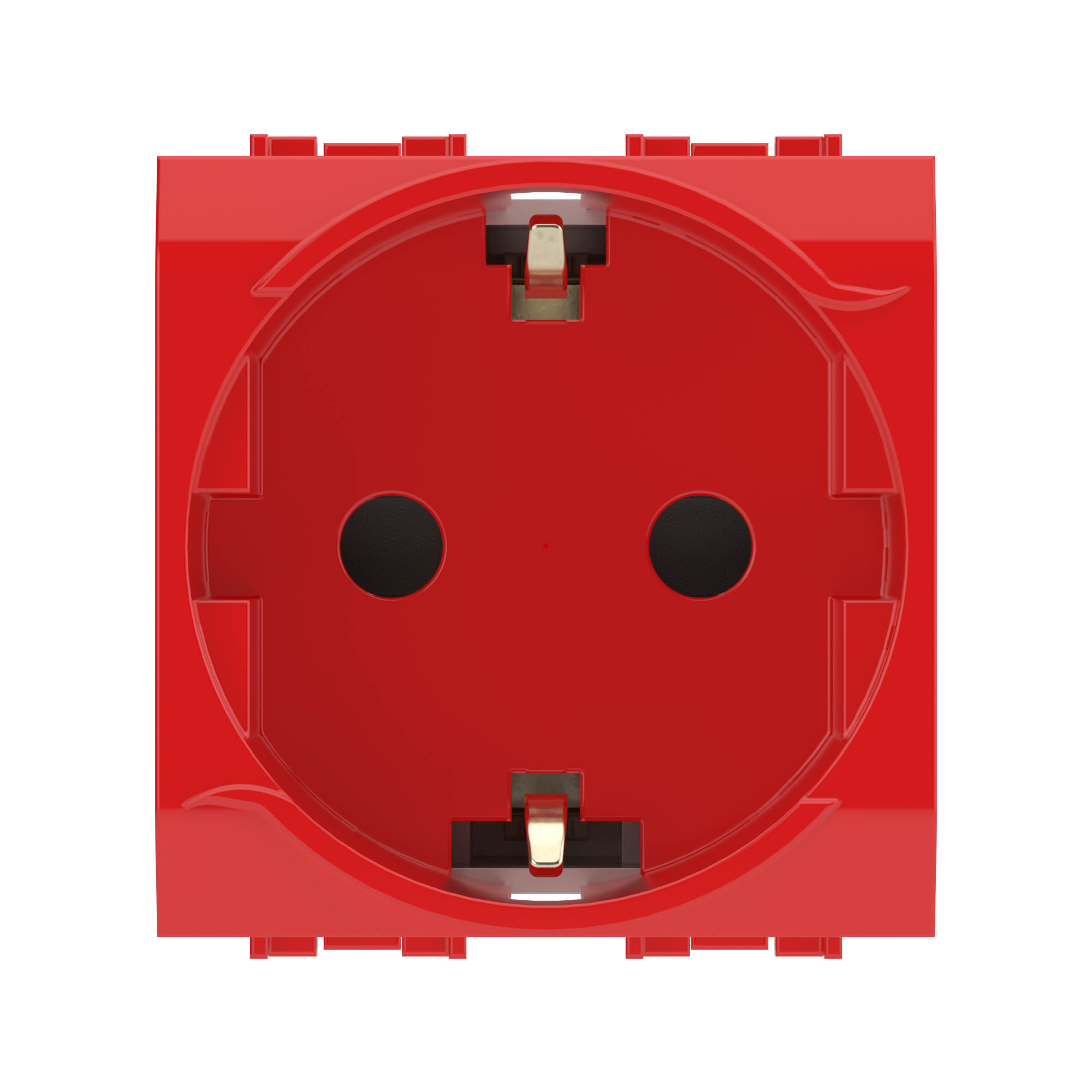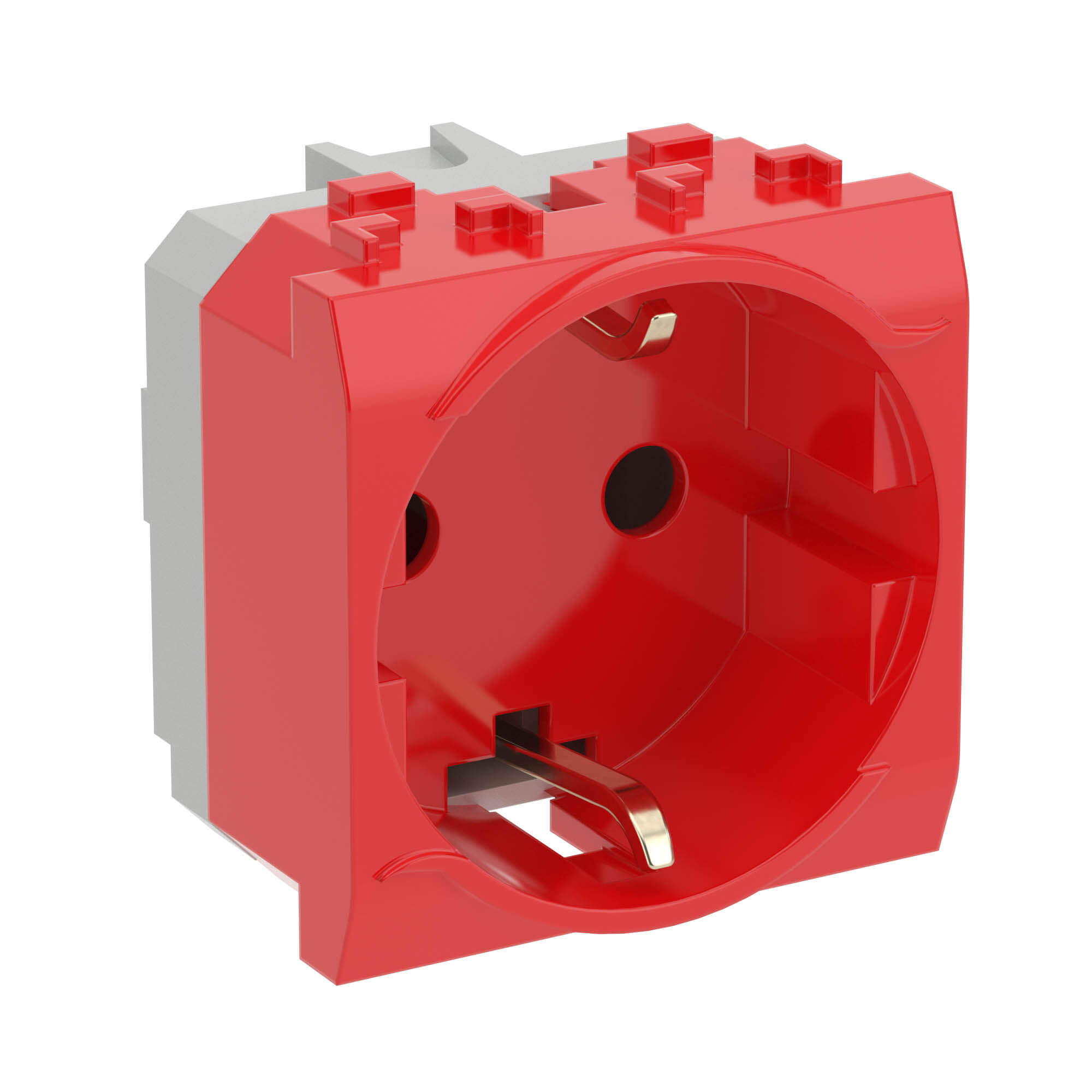 Электрическая розетка, с заземлением, со шторками, красная, 2 мод.