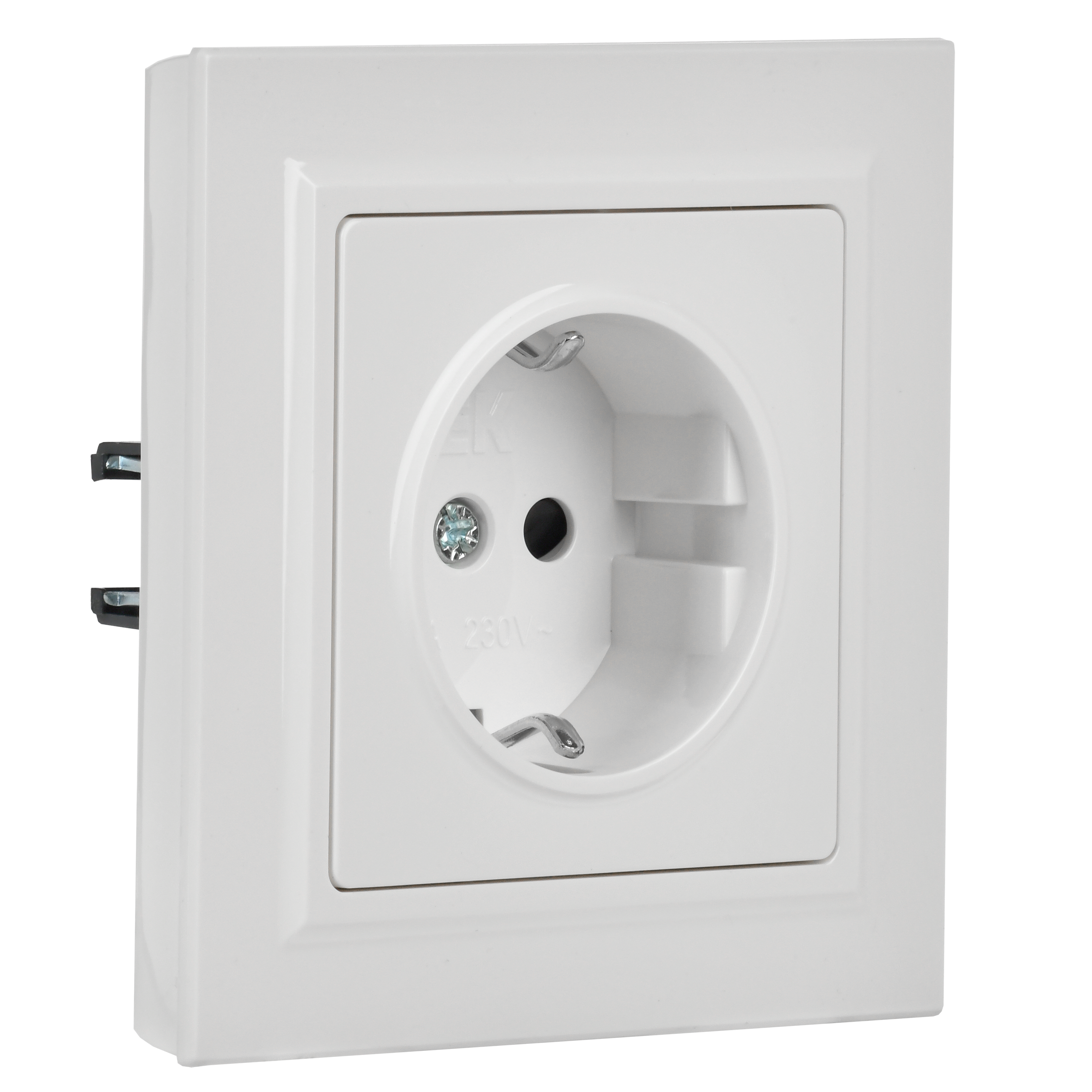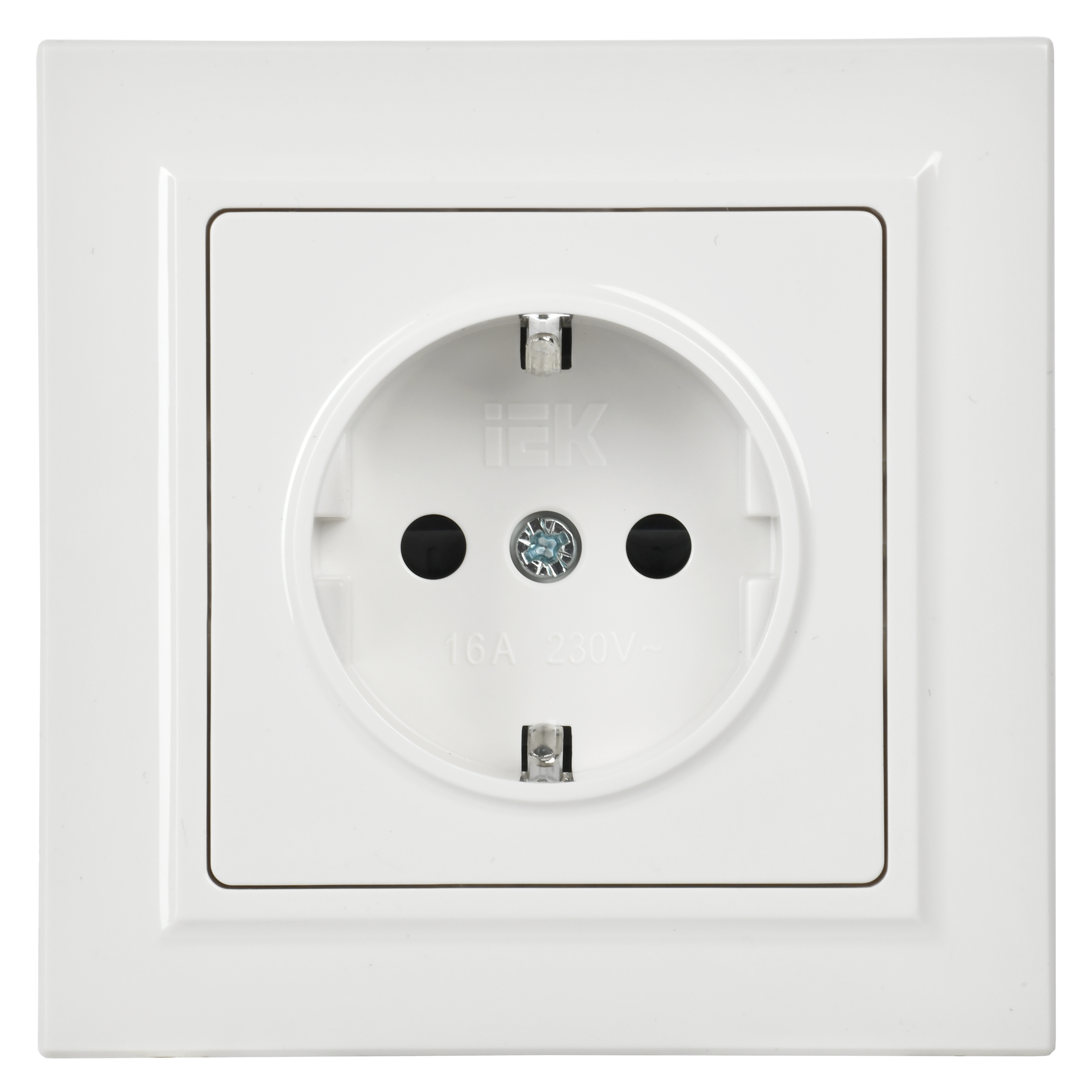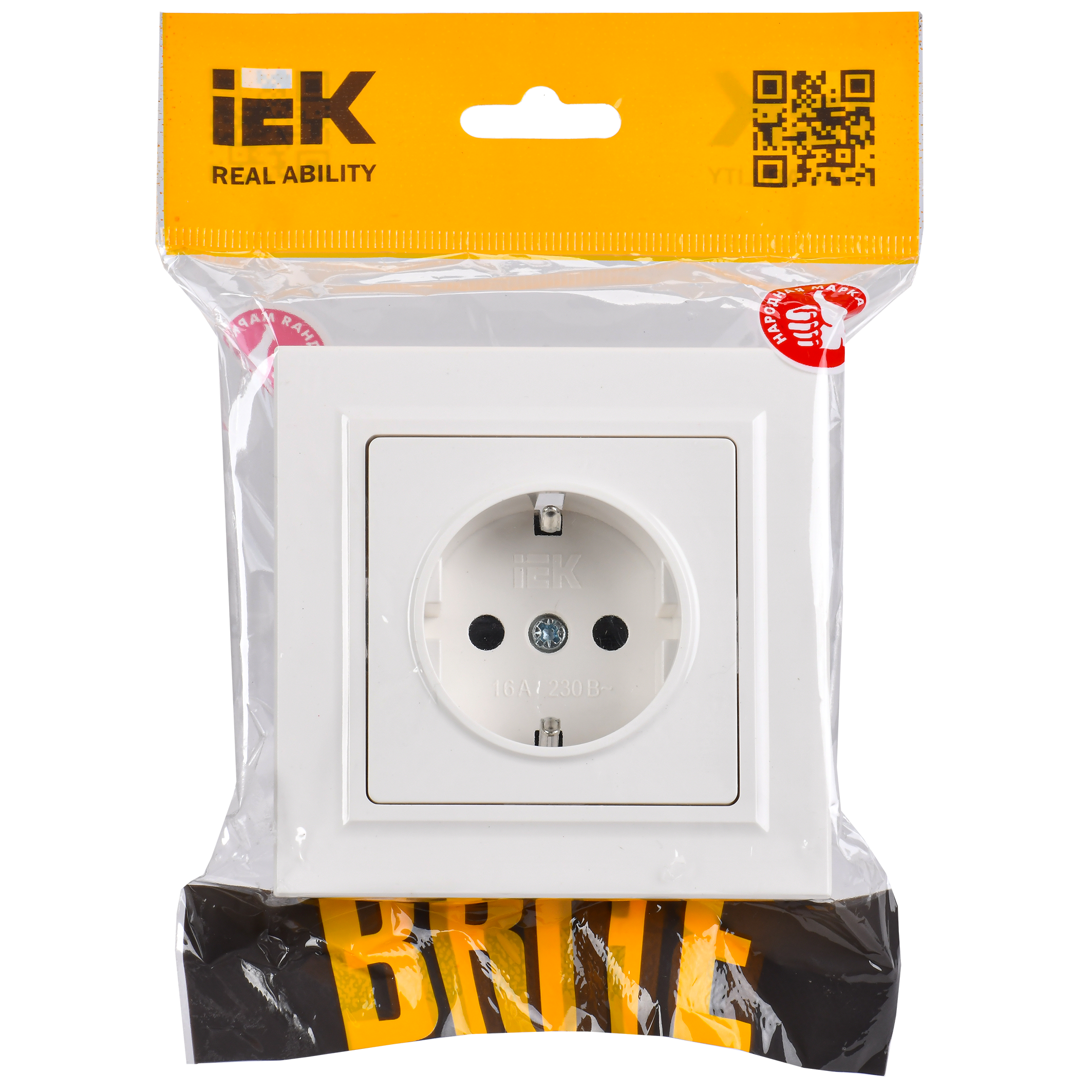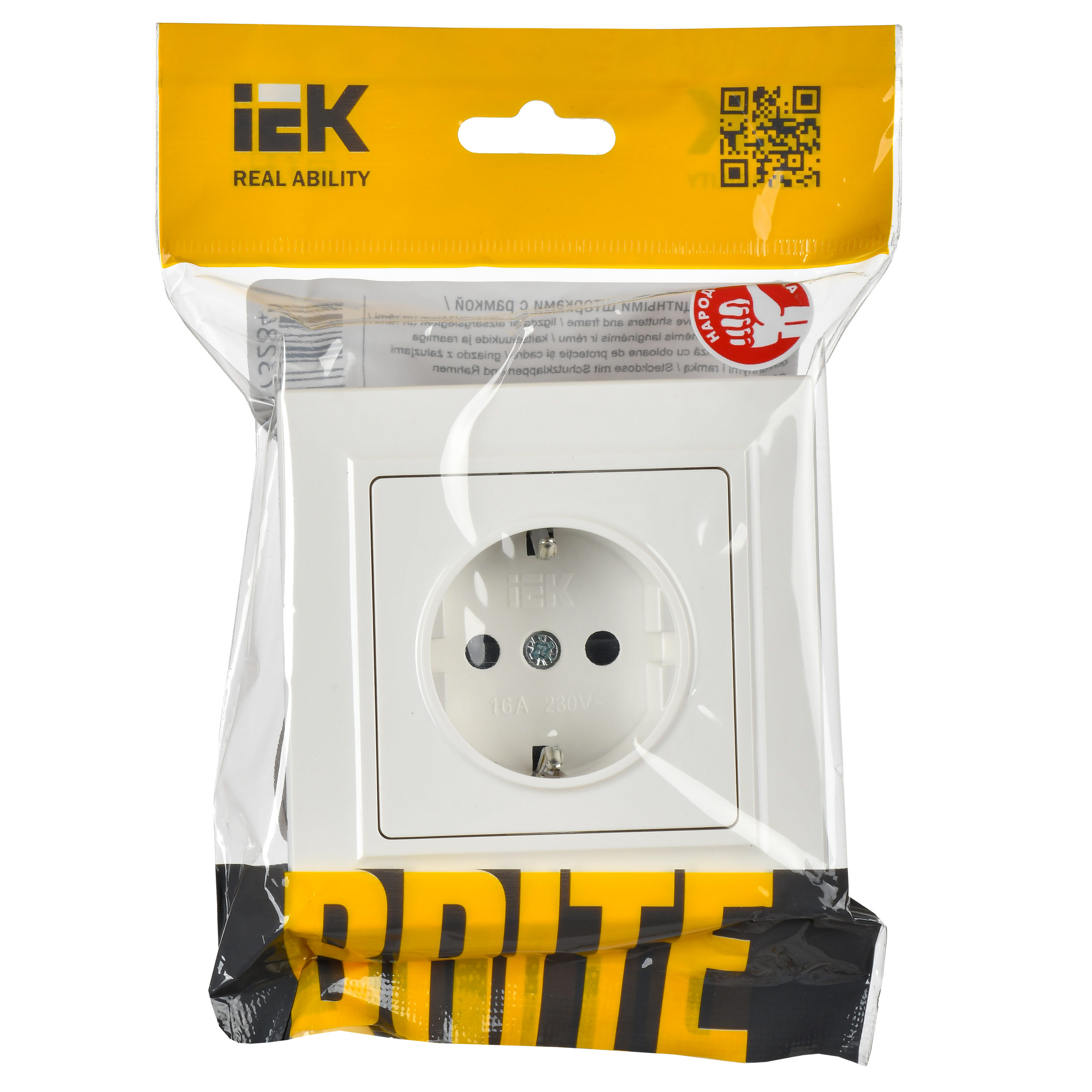BRITE Розетка 1-местная с заземлением с защитными шторками 16А в сборе РСР14-1-0-БрБ белый IEK