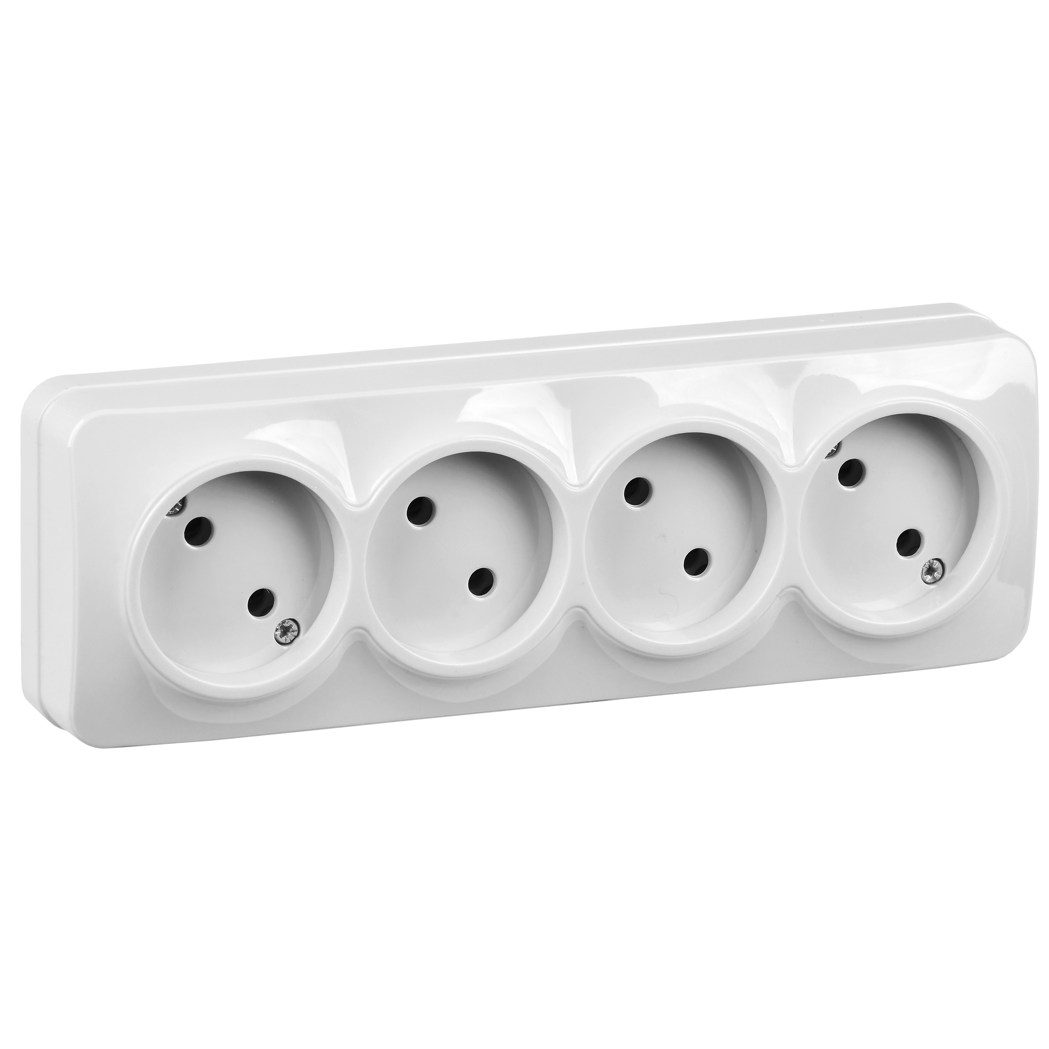 GLORY Розетка 4-местная для открытой установки без заземления без защитных шторок 10А РС24-2-ХБ белый IEK