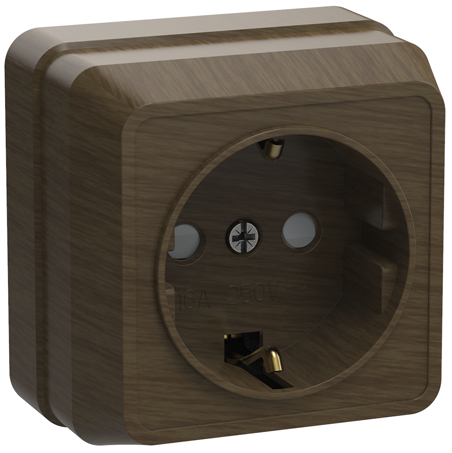 OKTAVA Розетка 1-местная с заземлением с защитными шторками для открытой установки 16А РСш20-3-ОД дуб IEK