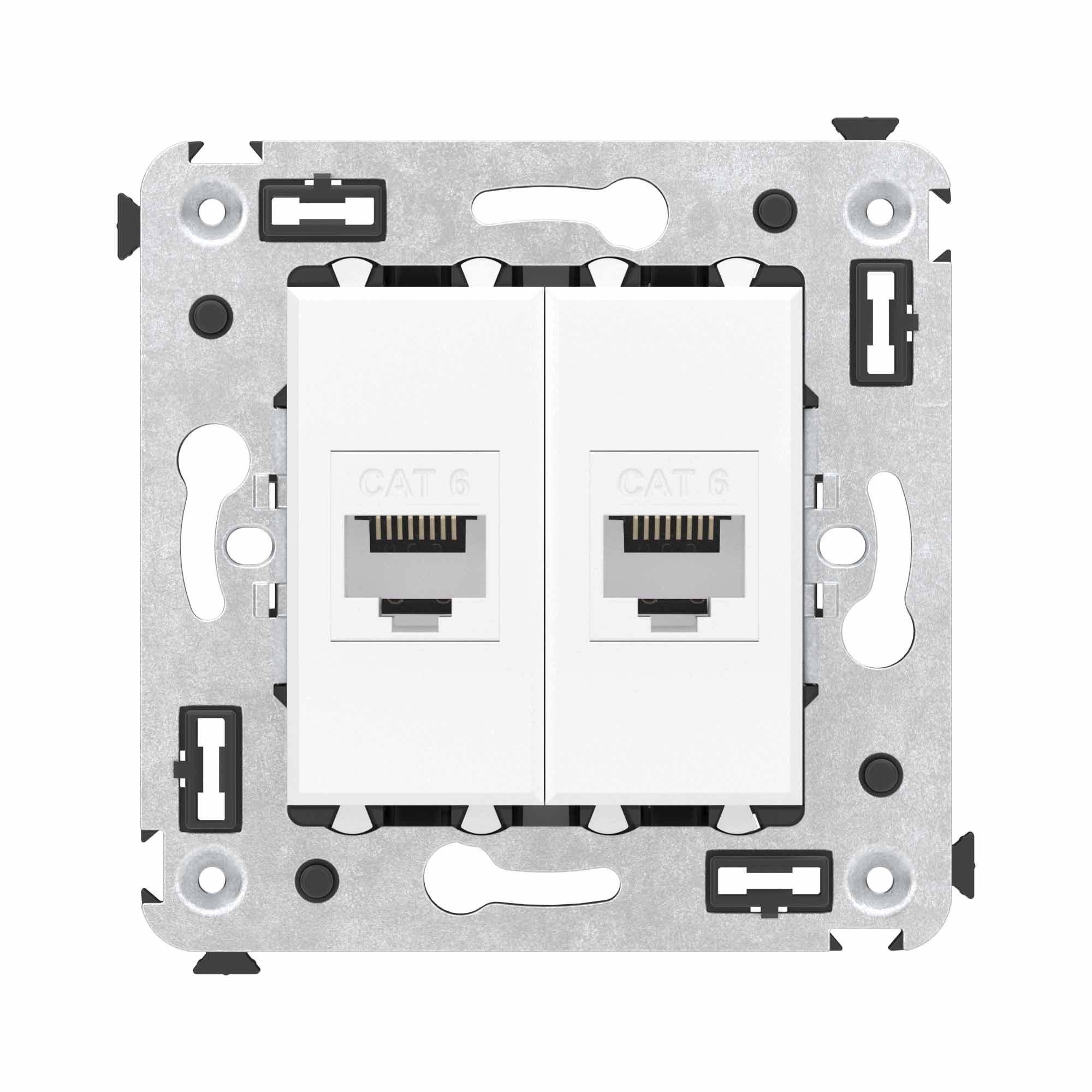 Компьютерная розетка RJ-45 без шторки в стену, кат.6 двойная, "Avanti", "Белое облако"