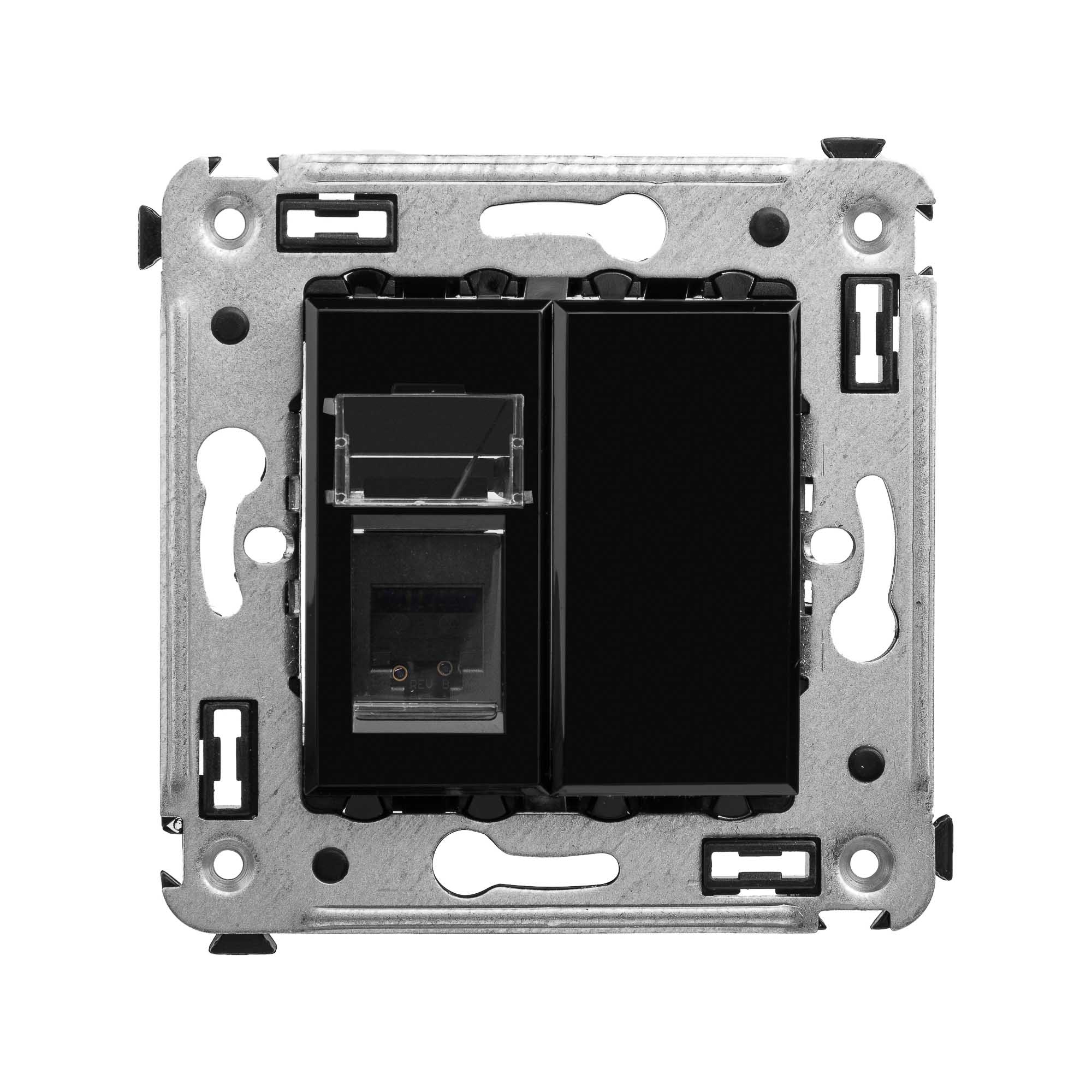 Телефонная розетка RJ-12 в стену одинарная, "Avanti", "Черный квадрат"