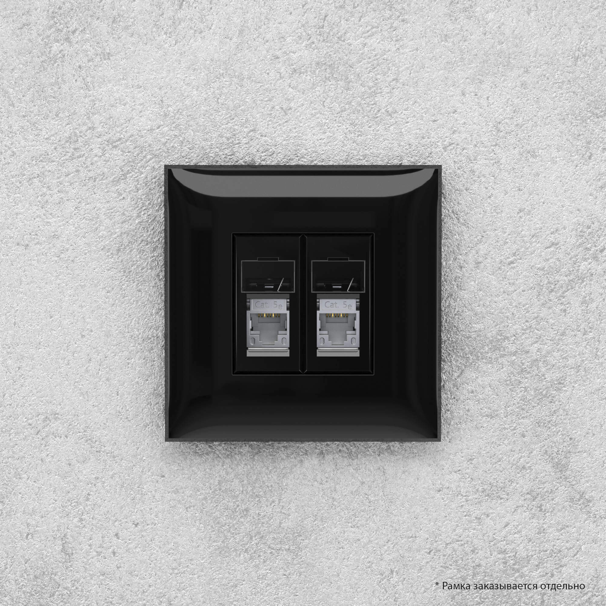Компьютерная розетка RJ-45 в стену, кат.5e двойная экранированная,"Avanti", "Черный квадрат"
