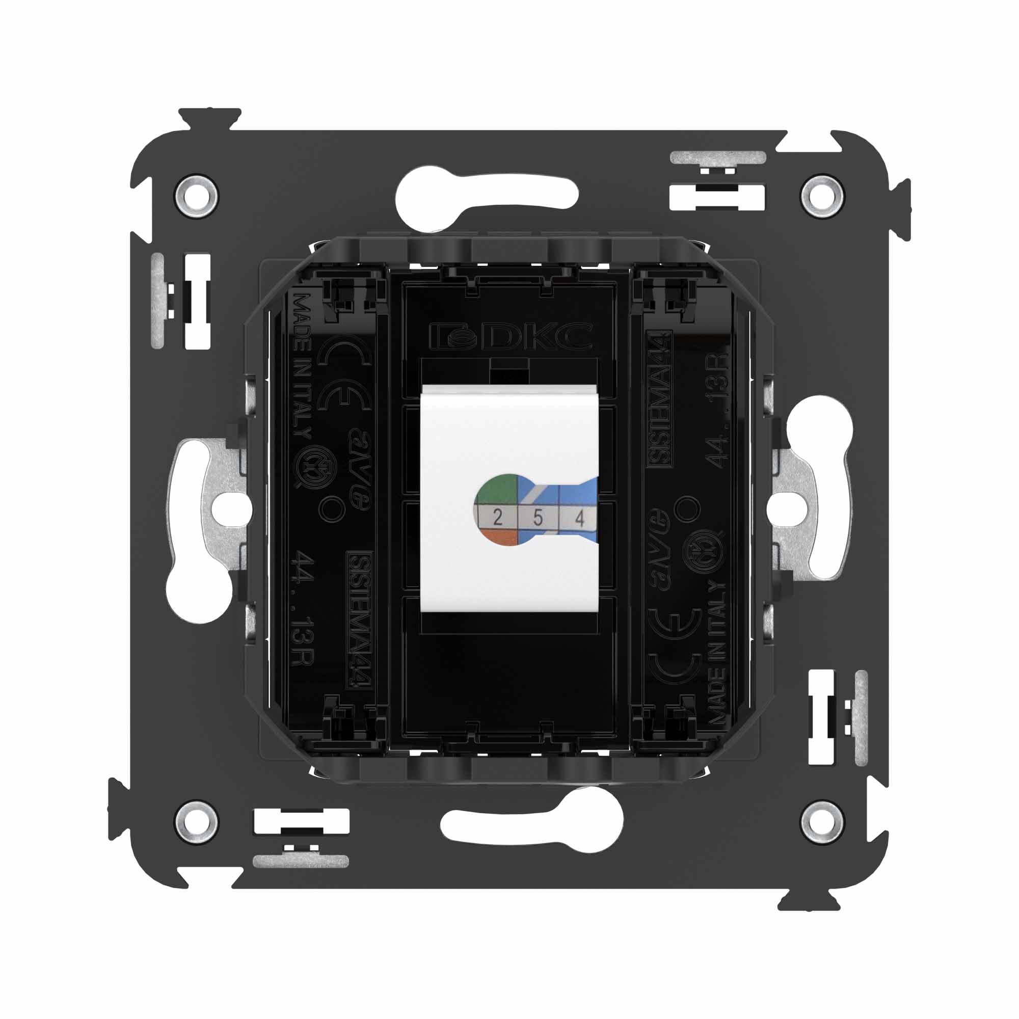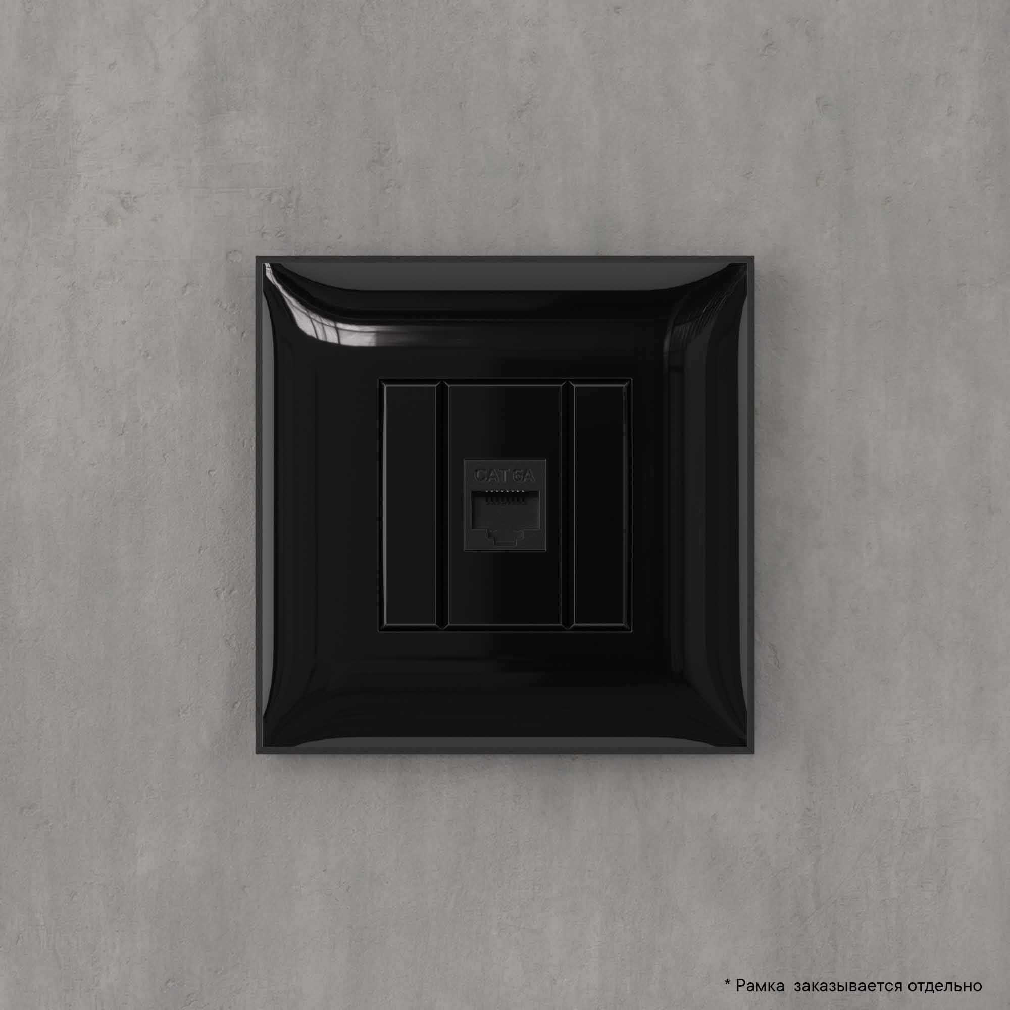 Компьютерная розетка RJ-45 без шторки в стену, кат.6A одинарная, "Avanti", "Черный квадрат"